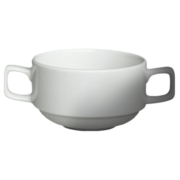 Cameo China Tableware USA, 610-40C, Dynasty Soup Cup, 11 oz. (330 ml), 4-1/8" x 6-1/8" x 2-1/2"H (10.5 cm x 15.6 cm x 6.2 cm), stackable, with two handles, dishwasher and microwave safe, vitrified glaze, ceramic, white (Packed By: 2 Dozen Per Case)