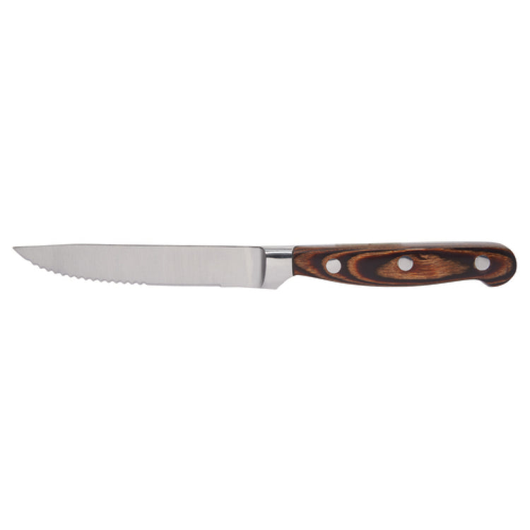 The Arc Cardinal FJ612 Chef & Sommelier Regal Steak Knife is a meticulously crafted culinary tool measuring L-9.4'' x W-1.7'', which exemplifies precision in both form and function. Designed with a pakkawood handle, this steak knife not only provides an ergonomic grip but also adds a touch of sophistication to any dining setting. The blade is constructed from high-quality stainless steel, known for its durability and resistance to corrosion, ensuring longevity and consistent performance. Packaged with 12 pieces in a case, this product caters to both professional chefs and high-end restaurants, offering a reliable cutlery solution for serving premium cuts of meat. Its elegant design makes it suitable for sommelier use, enhancing the dining experience by effortlessly cutting through steaks and other meats. As a minimum purchasing unit case, it represents a practical choice for establishments looking to maintain uniformity in their tableware collection. The Arc Cardinal FJ612 Chef & Sommelier Regal Steak Knife stands out in the marketplace by blending aesthetic appeal with outstanding functionality, making it an ideal selection for various segments within the food service industry. Its technical specifications and superior craftsmanship underscore its position as a preferred choice for quality dining experiences.