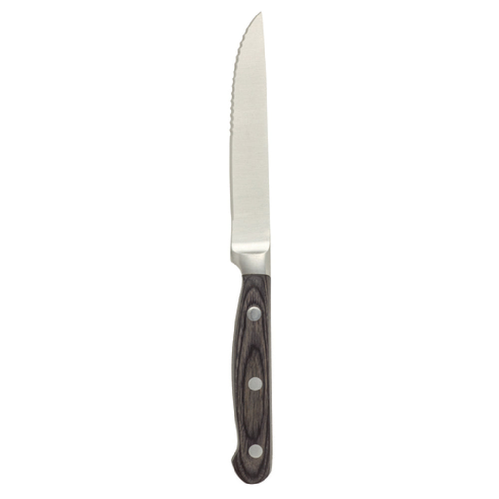 The Arc Cardinal FK603 Chef & Sommelier Regal Grey Steak Knife is a precise culinary tool, measuring L-9.375'' x W-0.787''. Crafted from high-quality stainless steel, this steak knife showcases a sleek, modern design that enhances any dining experience. Its handle, made of Pakkawood, not only provides a comfortable grip but also adds a touch of elegance with its distinctive regal grey hue. This product is ideal for upscale dining restaurants, where presentation and functionality are equally important. Supplied in a case of 12 pieces, the minimum purchasing unit is CS, making it suitable for bulk purchases by hospitality businesses, catering services, and culinary schools seeking durable and stylish cutlery solutions. The Arc Cardinal FK603 is specifically engineered for those who appreciate fine dining tools, combining aesthetic appeal with practical performance. Its dimensions and material composition ensure it meets the high standards of professionals in the food and beverage industry, providing a reliable and sophisticated addition to any cutlery collection.