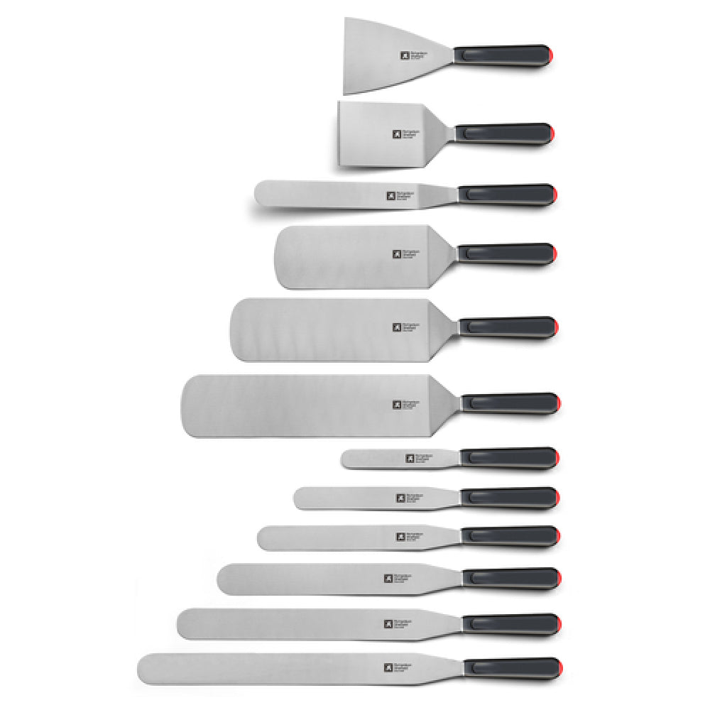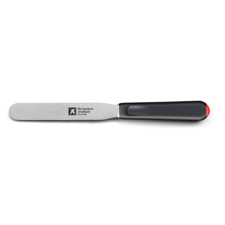 The Arc Cardinal FN220 Spatula 6" Straight is a meticulously designed kitchen tool, crafted with precision for professional and home kitchens alike. Featuring a 6-inch straight blade made from high-quality stainless steel, this spatula is engineered for durability and resistance to corrosion. The black polypropylene handle provides a comfortable grip, ensuring ease of use during food preparation. An innovative feature of this spatula is its inclusion of five HACCP inserts in white, blue, green, yellow, and red, which support color-coded kitchen systems for enhanced food safety and organization. Manufactured by Richardson Sheffield under the Pro Flex line, this spatula emphasizes flexibility and reliability. Packaged six per case, it addresses the needs of various culinary environments, from individual chefs to large-scale operations. The Arc Cardinal FN220 Spatula is shipped from the FOB shipping point in Totowa, NJ 07512, ensuring efficient delivery to diverse locations. This product is ideal for segments within the food industry that prioritize hygiene, versatility, and precision in their kitchen tools, making it a valuable addition to any culinary toolkit.