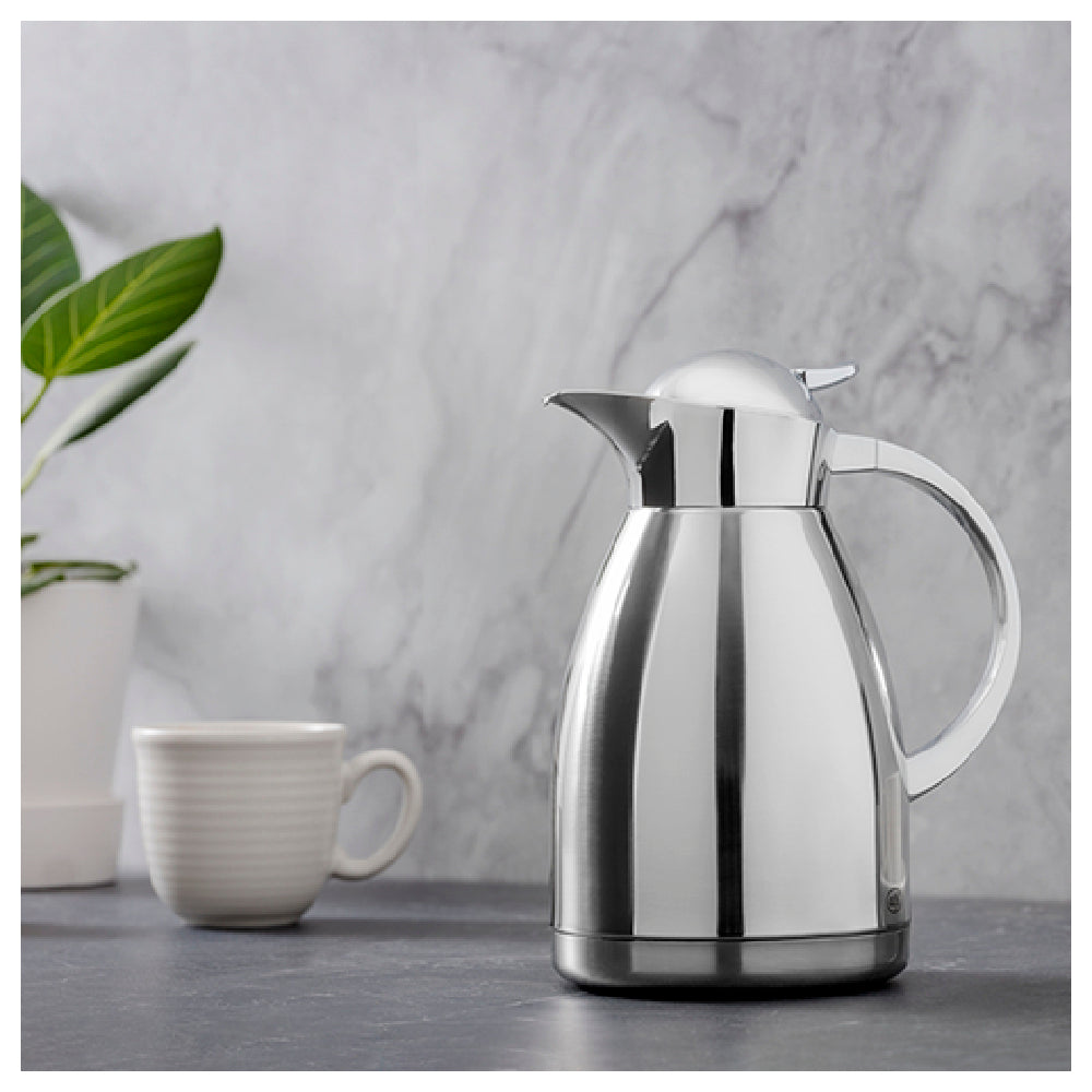 The Arc Cardinal FN345 Alfi Albergo Carafe 50.0 Oz Stainless Steel stands out with its sleek design and practical functionality, making it a versatile choice across various industry segment markets. This carafe boasts a substantial capacity of 50.0 ounces, accommodating large volumes of beverages, which is ideal for catering services and hospitality businesses requiring efficient serving solutions. Constructed from high-quality stainless steel, the FN345 ensures durability and long-lasting performance, proving invaluable in high-use environments where robustness is key. Packaged as two pieces per case, this product is designed with convenience in mind, catering to bulk purchasing needs typical in commercial settings. The minimum purchasing unit is one piece, facilitating flexible procurement options for businesses of different sizes. The polished exterior not only offers a modern aesthetic appeal but also contributes to the carafe's heat retention capabilities, keeping beverages at the preferred temperature for extended periods. The Arc Cardinal FN345 Alfi Albergo Carafe is a strategic investment for businesses seeking a reliable and attractive solution for beverage service. Its design and functionality align perfectly with the demands of professional settings, enhancing service quality while maintaining a sophisticated presentation.