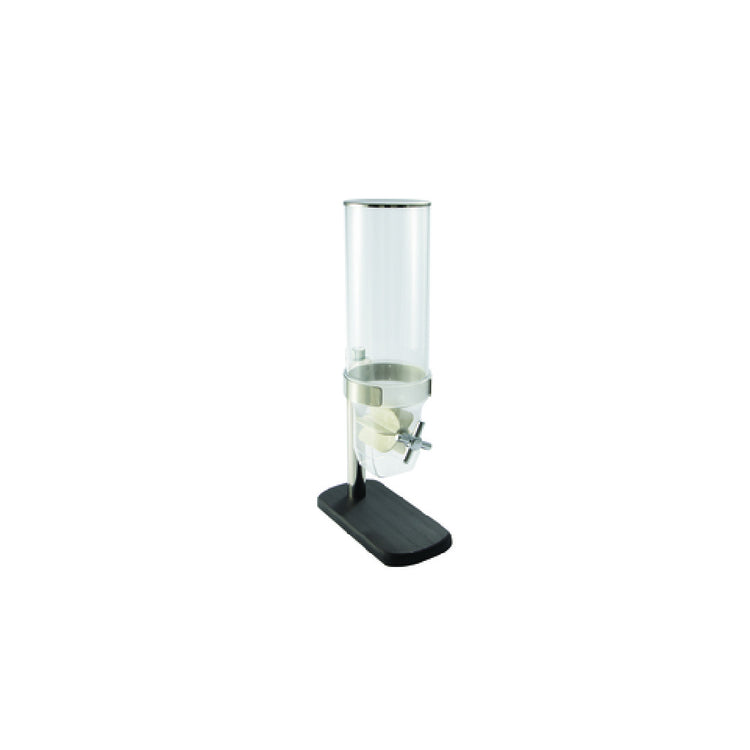 The Arc Cardinal FP056 Abert Cosmo Cereal Dispenser is a versatile and elegantly designed unit tailored for both commercial and residential settings. With a substantial capacity of 101.0 oz, this dispenser is crafted from durable acrylic, ensuring long-lasting use while providing a clear display of its contents. Its construction is augmented with powder-coated steel and wood elements, adding a touch of sophistication and sturdiness. This dispenser is uniquely designed for single-piece distribution, with one unit per case and a minimum purchasing requirement of one piece. Ideal for hotels, buffets, and cafeterias, the Arc Cardinal FP056 Abert Cosmo Cereal Dispenser seamlessly combines practicality with style, making it a distinctive choice for various market segments within the hospitality industry. Its thoughtful design not only enhances the visual appeal of any breakfast setup but also ensures efficient, mess-free dispensing. The blend of materials used in its construction underscores a commitment to quality and aesthetic value, making it a reliable and attractive solution for cereal storage and service needs. The Arc Cardinal FP056 stands as a testament to innovative design and functionality, catering to the demands of modern-day food service operations with its robust build and appealing aesthetics.