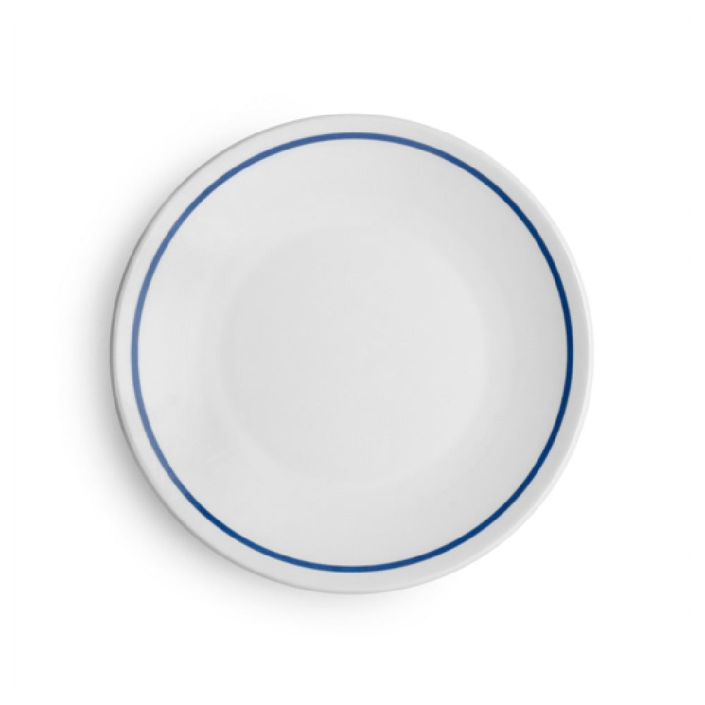 The Arc Cardinal FP465 Santa Anita Reflections Blue Band Coupe Plate (D-9.0'') Stoneware is an elegantly designed dinnerware piece that combines aesthetic appeal with durability, making it a versatile choice for both casual and formal dining settings. Measuring 9.0 inches in diameter, this coupe plate is crafted from high-quality stoneware, known for its strength and resistance to chipping, ensuring long-lasting performance in bustling dining environments. The plate's defining feature is its Reflections Blue Band, which adds a touch of sophistication and color, enhancing any table setting. Packaged efficiently, each case contains 12 pieces, making it a cost-effective option for restaurants and catering services that require bulk purchases without sacrificing style or functionality. The minimum purchasing unit is a case, meaning that buyers receive this timeless design by the dozen, ideal for establishments looking to maintain consistency in their dining presentations. This product appeals to various segments, from high-end hospitality venues to everyday eateries, thanks to its classic design coupled with practical durability. The Arc Cardinal FP465 plate stands out as a reliable and stylish option in the stoneware category, meeting the demanding needs of the food service industry while enhancing the dining experience for patrons.
