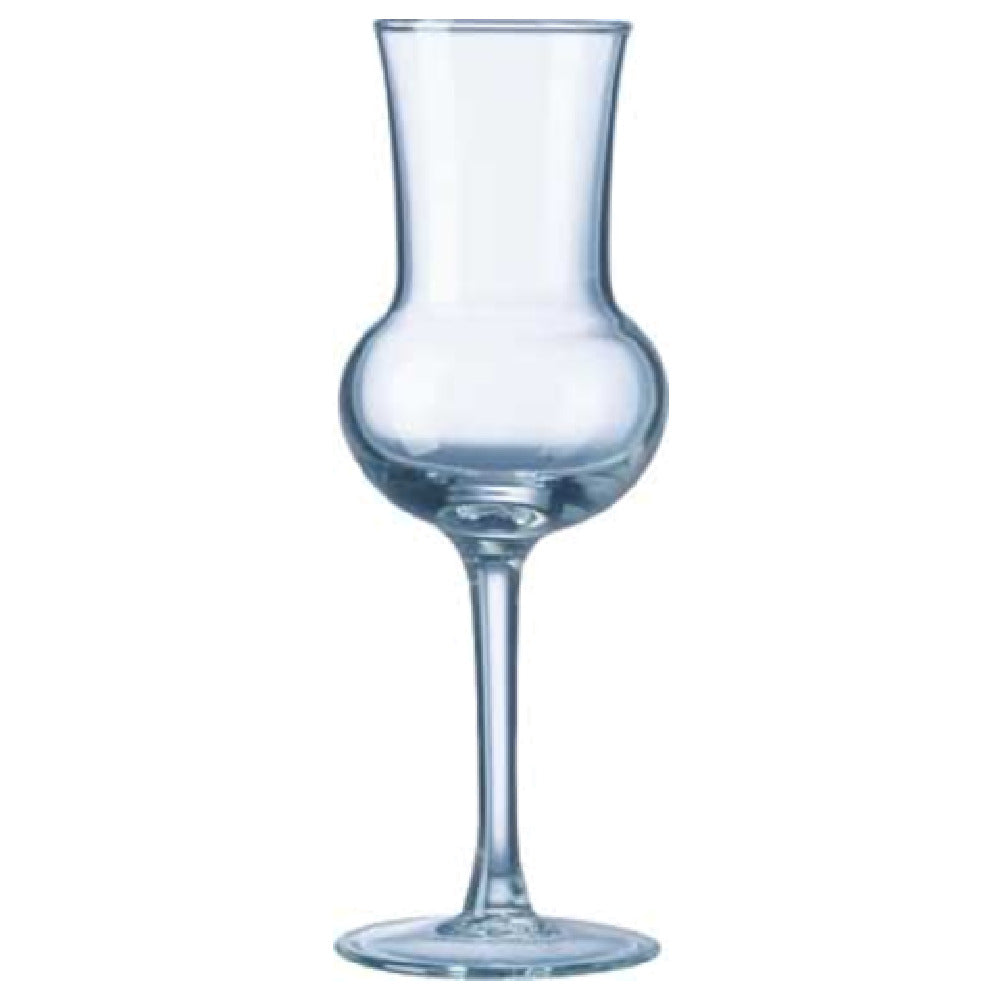The Arc Cardinal G1420 Grappa 3 Oz. Glass is a precisely crafted piece of glassware designed to enhance the grappa tasting experience. With its dimensions - a height of 6-1/4 inches, a top diameter of 1-11/16 inches, a base diameter of 2-3/16 inches, and a maximum diameter of 2-3/16 inches - this glass delivers an elegant and ergonomic form that is perfect for savoring every nuance of grappa. Manufactured by Arcoroc under the Excalibur line, it features high-quality glass construction, ensuring durability and clarity for repeated use. Ideal for upscale restaurants, bars, and dedicated grappa enthusiasts, the Arc Cardinal G1420 is packaged by the case, containing two dozen glasses per case, making it a practical option for establishments seeking to maintain a uniform and sophisticated presentation. This glass is perfectly suited for both intimate settings and larger events, offering versatility in service while emphasizing the unique characteristics of the grappa it contains. Its thoughtful design and precise dimensions facilitate the aeration and concentration of aromas, enriching the tasting experience for professionals and connoisseurs alike. The Arc Cardinal G1420 Grappa Glass stands as a hallmark of fine glassware in the industry, blending functionality with aesthetic appeal.