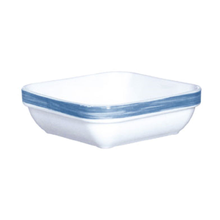 The Arc Cardinal H3612 Arcoroc Brushed Blue Jean Square Bowl 8.0 Oz (D-4.25'') is a versatile piece crafted from fluorosilicate opal glass, notable for its durability and elegant design. This square bowl boasts a capacity of 8.0 ounces, with a diameter of 4.25 inches, making it an ideal choice for serving small portions in a stylish manner. The brushed blue jean finish adds a trendy and sophisticated touch to any tabletop setting, appealing to modern culinary aesthetics. The bowl is offered in cases of 24 pieces, packed by 2 dozen per case, which is a convenient purchasing option for restaurants, catering companies, or hospitality venues requiring bulk quantities without sacrificing style or quality. The use of fluorosilicate opal glass not only enhances the bowl's resistance to thermal and mechanical shocks but also ensures a long-lasting shine and pristine appearance, catering to the demands of high-turnover environments. Such material properties make it an excellent choice for both casual dining and upscale events, providing exceptional versatility across different market segments in the food and beverage industry. The Arc Cardinal H3612 Arcoroc Brushed Blue Jean Square Bowl seamlessly combines functionality with aesthetic appeal, making it a valuable addition to any culinary presentation.