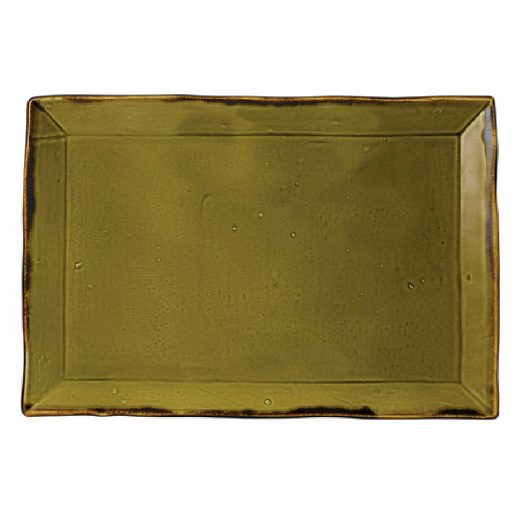 Arc Cardinal HG002 Dudson Harvest Green Rectangle Tray (L:13.25'' X W:9.0'') Vitrified Ceramic - 6/Case