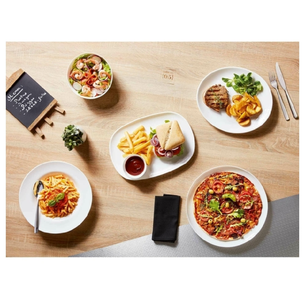 The Arc Cardinal L2810 Arcoroc Evolutions White Pizza Plate is a 12.5-inch diameter dish crafted from fluorosilicate opal glass, known for its durability and aesthetic appeal. This plate is part of a comprehensive set, with each case containing 12 pieces, making it ideal for commercial food service establishments needing uniformity and reliability. The fluorosilicate opal glass construction provides enhanced scratch and chip resistance, crucial for high-traffic dining environments such as pizzerias and casual dining restaurants. Moreover, its pristine white finish offers an elegant presentation, complementing a variety of culinary styles and allowing the vibrant colors of toppings to stand out, thereby enhancing the dining experience. The plate's specific size is tailored to accommodate a standard pizza, ensuring ample space without overwhelming the table setting. Designed for versatile applications, it meets the demands of hospitality businesses looking for both function and form in their tableware. By utilizing a minimum purchasing unit of one case, businesses can manage inventory efficiently while maintaining a consistent dining presentation. The Arc Cardinal L2810 plate embodies a blend of technical performance and sophisticated design, making it a valuable asset for restaurants seeking quality, durability, and visual appeal in their serveware.