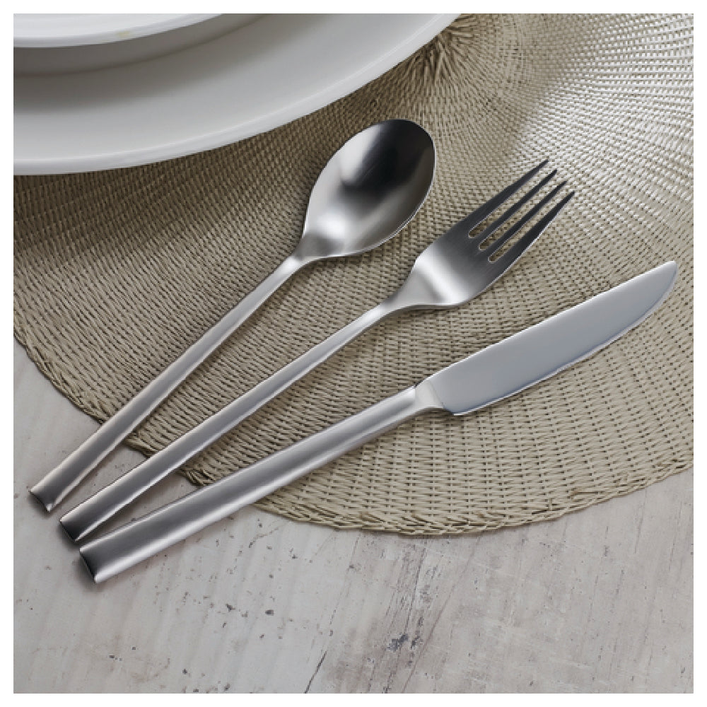 The Arc Cardinal MB322 Sola Living Satin Dinner Spoon is a meticulously crafted utensil, measuring 8.125 inches in length and 2.8 inches in width. Constructed from premium 18/10 stainless steel, this dinner spoon combines durability with a refined aesthetic, making it a standout choice for both professional dining establishments and home use. The 18/10 stainless steel composition ensures a superior level of corrosion resistance and a lasting shine, suitable for environments where both hygiene and appearance are paramount. This spoon is designed to complement the sophisticated presentations often required in upscale restaurants and catering services. Sold with a minimum purchasing unit of a case, each case contains 12 pieces, making it ideal for bulk purchases catering to large-scale dining operations. The satin finish offers a sleek, modern look that fits seamlessly into a variety of table settings, appealing to food service providers looking to enhance their dining experience with understated elegance. The Arc Cardinal MB322 Sola Living Satin Dinner Spoon is thus not only a functional tool but also a versatile element of tableware that supports a seamless blend of style and substance in any dining setup.