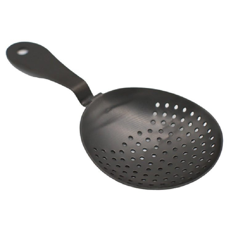 The Arc Cardinal MT002 Arcoroc Mix Julep Strainer Black Matte (L-7.007'' X W-3.031'') is a premium bar tool meticulously crafted from 18/8 stainless steel, ensuring durability and resistance to corrosion. This julep strainer, with its sleek black matte finish, adds a touch of sophistication to any bar setting. Measuring 7.007 inches in length and 3.031 inches in width, it is designed to fit seamlessly into various cocktail shakers and mixing glasses, making it an essential tool for bartenders and cocktail enthusiasts. The strainer comes as a single piece in a case, with a minimum purchasing unit of CS, indicating it is packed by one each, ideal for both personal use and professional bar settings. The high-quality materials and precise dimensions make the Arc Cardinal MT002 a reliable choice for straining cocktails, ensuring that each drink is perfectly mixed and free of unwanted debris. Its elegant design and robust construction cater to diverse market segments within the hospitality industry, including upscale bars, restaurants, and home bar setups. This product exemplifies a blend of aesthetic appeal and functional efficiency, making it a valuable addition to any cocktail-making arsenal.