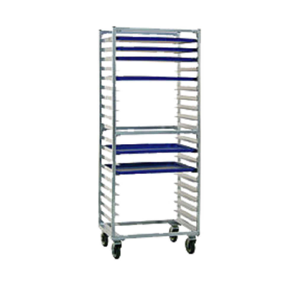 The Carter Hoffmann O8620D Pan Rack is a versatile storage solution designed with precision to meet the rigorous demands of commercial kitchens and foodservice operations. Measuring 20-5/8 inches wide, 28-1/4 inches deep, and 69-5/16 inches high, this pan rack is engineered for efficient space utilization and accessibility. Its open sides and fixed angle slides accommodate up to twenty 18-inch by 26-inch trays, ensuring ample storage with consistent 3-inch spacing for optimal air circulation and quick access. Constructed from durable aluminum, the O8620D Pan Rack is built for longevity and withstands the demands of daily use. The end loading design further enhances its functionality by facilitating easy loading and unloading, streamlining kitchen operations. Equipped with 5-inch casters, this pan rack offers exceptional mobility, allowing it to be effortlessly maneuvered across different areas of your workspace. The Carter Hoffmann O8620D Pan Rack stands out as an essential piece of equipment for businesses ranging from bakeries to large-scale catering services, delivering a robust combination of capacity, convenience, and durability.