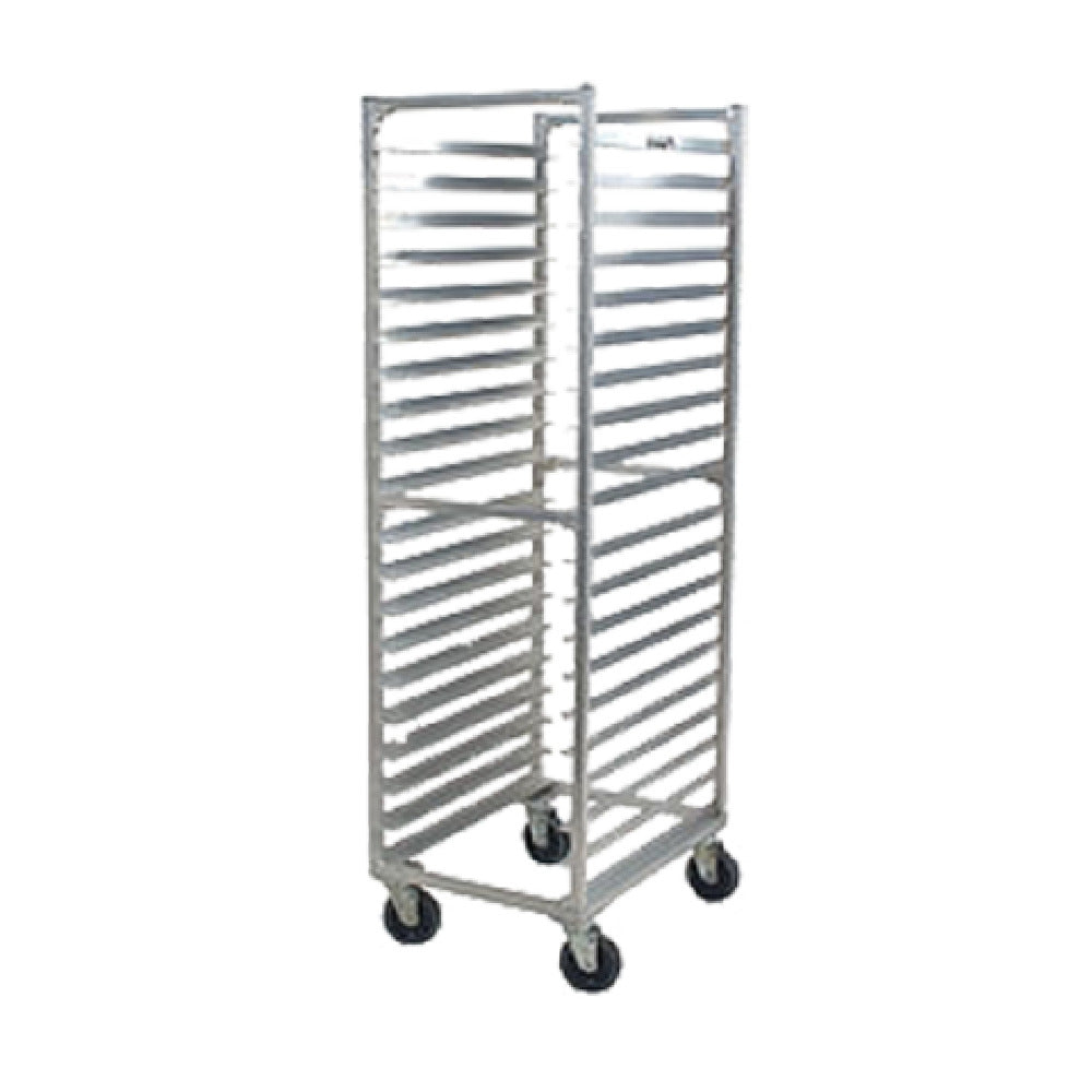 The Carter Hoffmann O8636 Pan Rack is an industrial-grade storage solution designed with precision to meet the demands of high-volume kitchens and bakeries. It features a generous double-width dimension of 40-1/8"W, 26-1/4"D, and stands at a height of 64-3/16"H, providing ample storage capacity that accommodates up to 36 trays measuring 18" x 26". With a spacing of 3" between trays, this pan rack ensures optimal organization and accessibility. Constructed from durable aluminum, the rack is engineered for strength and reliability. Its open-sided design and fixed-angle slides facilitate effortless end-loading, enhancing operational efficiency. Equipped with 5" casters, it offers smooth mobility, enabling easy transportation across different areas within a facility. The Carter Hoffmann O8636 is an essential asset within commercial kitchens, catering services, and bakery operations, where maximizing space and efficiency is paramount. Its robust construction and thoughtful design ensure it withstands the rigors of daily use, making it a versatile and reliable choice for professionals in the food service industry.
