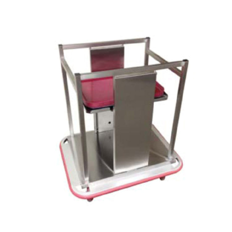 The Carter Hoffmann OTD2S1622 Open Tray Dispenser - 2 Stack for 16"x22" Trays is a highly specialized piece of equipment engineered to enhance the efficiency of food service operations. This product is meticulously constructed with a stainless steel welded tubular frame, ensuring durability and robustness even in high-demand environments. Designed to accommodate 16"x22" trays, it features a dual-stack configuration, optimizing space and allowing simultaneous handling of multiple trays. The dispenser is equipped with an adjustable mechanism, providing flexibility to suit different tray types, thereby catering to varied industry needs. One of its standout features is the 5" all swivel casters, which incorporate a pulley style self-leveling system, ensuring smooth mobility and stability during transport. This makes it an ideal solution for cafeterias, catering services, and other food service settings where efficiency and reliability are paramount. The Carter Hoffmann OTD2S1622 is not just a tray dispenser; it is a strategic asset that supports streamlined service operations through its superior design and adaptability, offering a unique value proposition for establishments looking to enhance their operational workflow.