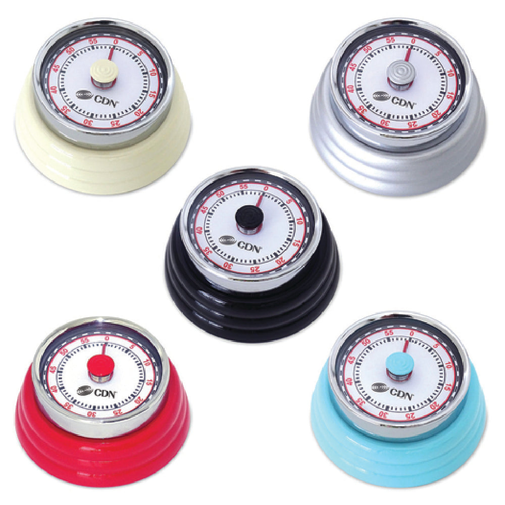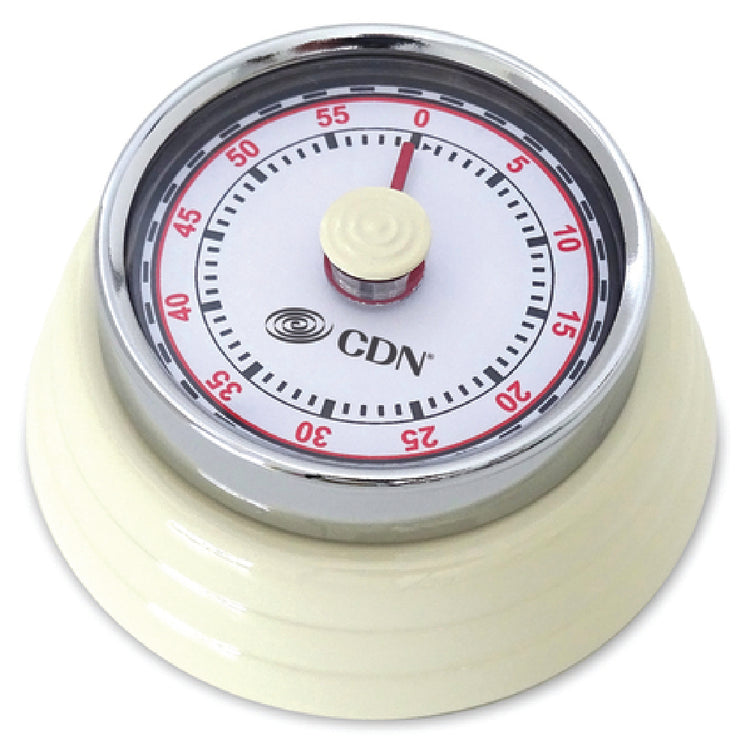The CDN MT4-W Compact Mechanical Timer is a precision-designed tool perfect for various time management needs, featuring a 2-inch (5-1/10 cm) diameter face for clear visibility. This mechanical timer provides a countdown functionality, specifically engineered to track up to 1 hour in minute increments, making it highly suitable for kitchen, laboratory, or classroom environments where precise timing is critical. Its robust 430 stainless steel housing ensures durability, while the ABS plastic face offers a lightweight yet sturdy construction. The timer emits a 3-second long alarm upon completion, effectively signaling the end of set time periods. The inclusion of a non-slip rubber magnet enhances its versatility, allowing it to be securely attached to metal surfaces, such as refrigerators or magnetic boards, thus ensuring it remains in place during use. The timer's sleek white finish complements its functionality with an aesthetic appeal, making it a practical and stylish addition to any setting where reliable timekeeping is essential. This combination of technical precision, durable materials, and user-friendly features underscores the CDN MT4-W Compact Mechanical Timer as a valuable asset across various market segments that require efficient and dependable time management solutions.