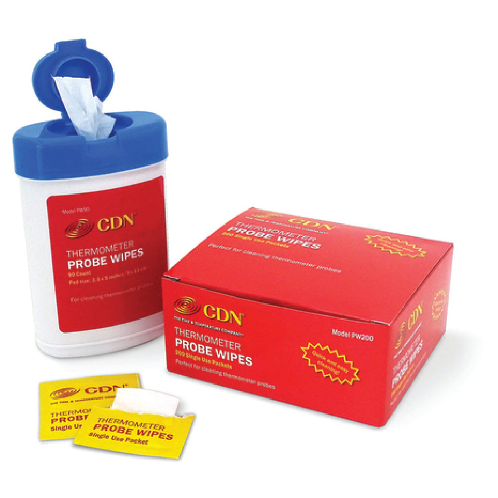 CDN PW200 Thermometer Probe Wipes Single Use Count 70% Isopropyl Alcohol - 50/Box