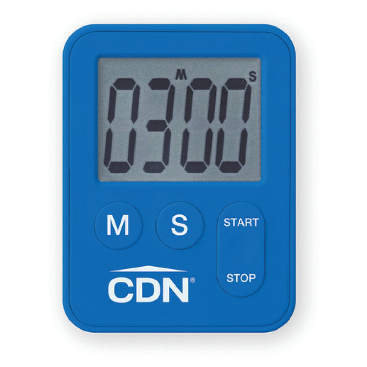 The CDN TM28-B Mini Timer is a compact and versatile timing device designed for precision and convenience, making it an essential tool for both professional and home kitchens. With dimensions of 2-1/10 inches in width, 3/8 inch in depth, and 2-3/4 inches in height, this mini timer is designed to fit comfortably in any workspace. It boasts a 100-minute countdown capacity with a 60-second alarm, ensuring that you never miss a critical moment while cooking or baking. The timer's functionality includes both up and down counting, alongside features such as stop and restart, and last count recall, which provide flexibility and ease of use for a variety of cooking tasks. A mounting magnet is included for easy attachment to metal surfaces, keeping the device within reach during busy kitchen operations. The timer comes with two batteries, ensuring that it is ready to use straight out of the box. Available in a sleek blue finish, the CDN TM28-B Mini Timer is an ideal solution for culinary professionals and enthusiasts who demand precision and reliability in their timing tools. Its combination of practical features and functional design caters to various segment markets, from culinary schools to home cooking aficionados.