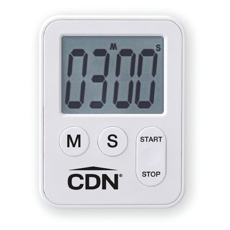 The CDN TM28-W Mini Timer, with its compact dimensions of 2-1/10"W x 3/8"D x 2-3/4"H, is an adept time-management tool suited to various industry segments requiring precision in timing. This 100-minute timer allows users to count up or down, catering to diverse time-tracking needs in professional and personal settings. The device is equipped with a 60-second alarm, ensuring attention is promptly drawn once the set time has elapsed. Its stop and restart functionality provides enhanced control over timing tasks, while the last count recall feature facilitates convenience for repetitive timing activities. The CDN TM28-W is designed with a mounting magnet, offering versatile placement options within any workspace. Included with the timer are two batteries, ensuring immediate usability. The unit is presented in a classic white finish, appealing to a wide range of aesthetic preferences. Its thoughtful combination of features makes it a valuable asset for chefs, educators, and anyone in need of a reliable and versatile timing solution.
