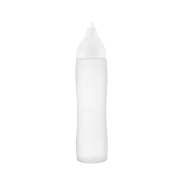 CFS Brands, 00555, Araven - Squeeze Dispenser, 17 oz.., 2-3/8" dia. x 10-1/4"H, non-drip, measuring scale, translucent, soft polyethylene with white cap & closure valve, HACCP compliant