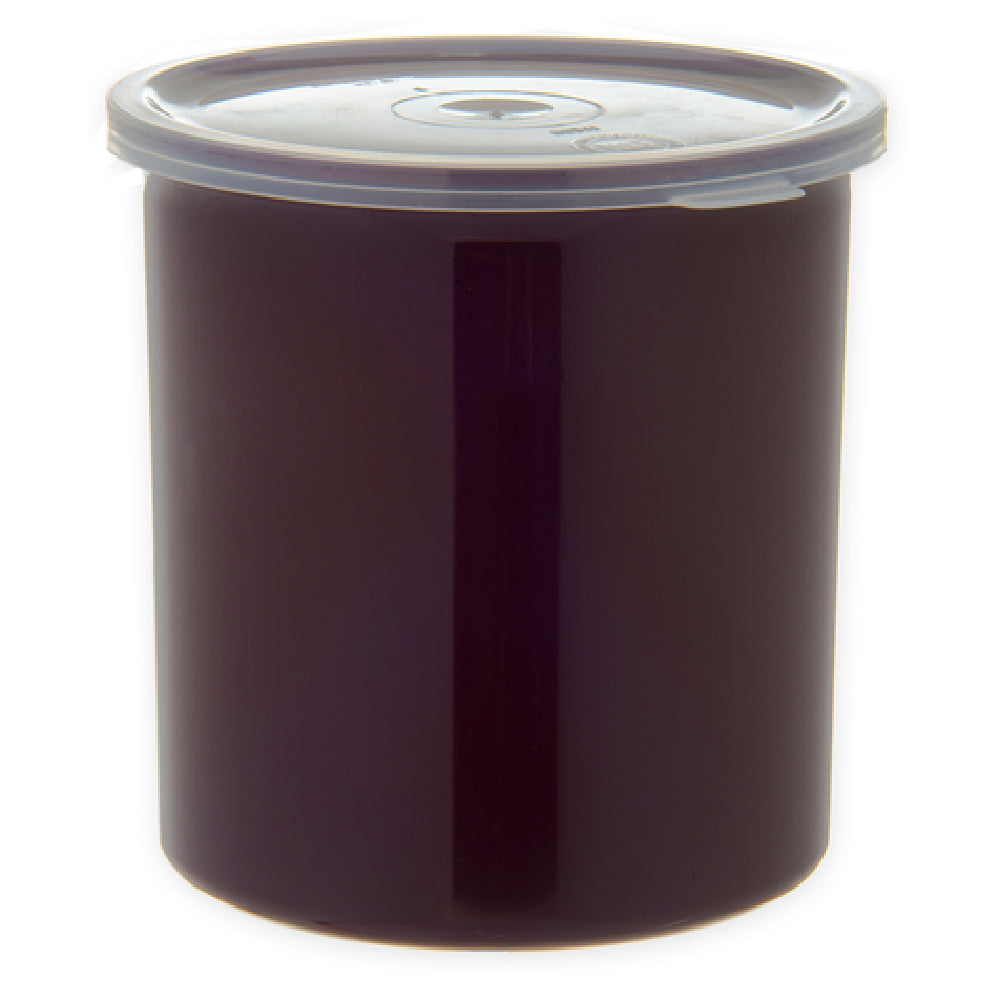 The Carlisle 030101 Carlisle Classic Crock 1.2 Qt. Snap-on Polypropylene Lid is a robust and versatile storage solution designed for various culinary environments. Featuring a thick-walled construction, it is specifically engineered to be stain, break, and chip resistant, ensuring durability and longevity in demanding settings. This crock comes with a snap-on polypropylene lid that secures contents efficiently, maintaining freshness. Its high-gloss finish not only adds an aesthetic appeal but also facilitates easy cleaning. With a temperature range of 0°F to 180°F, it can safely accommodate both hot and cold foods, making it suitable for a broad array of applications in the food service industry. The crock's dishwasher-safe property further enhances its practicality, allowing for effortless maintenance. Made from SAN (styrene acrylonitrile resin), it boasts high impact resistance, contributing to its NSF certification, which guarantees compliance with health and safety standards. Available in a sleek brown color, the Carlisle Classic Crock is proudly made in the USA, reflecting high manufacturing standards. This 1.2-quart capacity crock is an ideal choice for food service businesses seeking reliable and resilient storage solutions that support operational efficiency and product integrity.