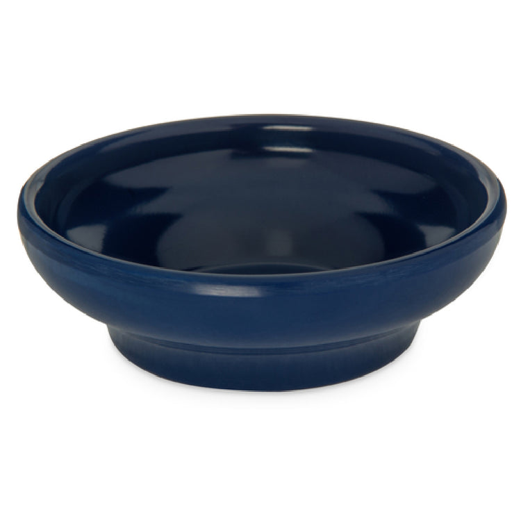 The Carlisle 087560 Carlisle Salsa Dish 5 Oz. 4-1/8" Dia. is a meticulously designed serving dish, perfect for both commercial and home dining settings. This dish features a 5-ounce capacity, making it ideal for serving individual portions of salsa, dips, or sauces. With a diameter of 4-1/8 inches, it provides ample space while maintaining a compact form. The dish is crafted to be dishwasher safe, ensuring ease of cleaning and maintenance. Its stain-resistant quality upholds its vibrant cobalt blue finish, even after repeated use. Uniquely designed to withstand temperatures up to 212°F, it guarantees durability in various serving conditions. Additionally, the dish's stackable nature allows for efficient storage, maximizing space in any kitchen environment. An NSF certification ensures compliance with public health standards, while its BPA-free construction highlights a commitment to safety and quality. This salsa dish stands out as a versatile and reliable choice for restaurants, cafes, and catering services, as well as for everyday home use, offering both aesthetic appeal and practical functionality.