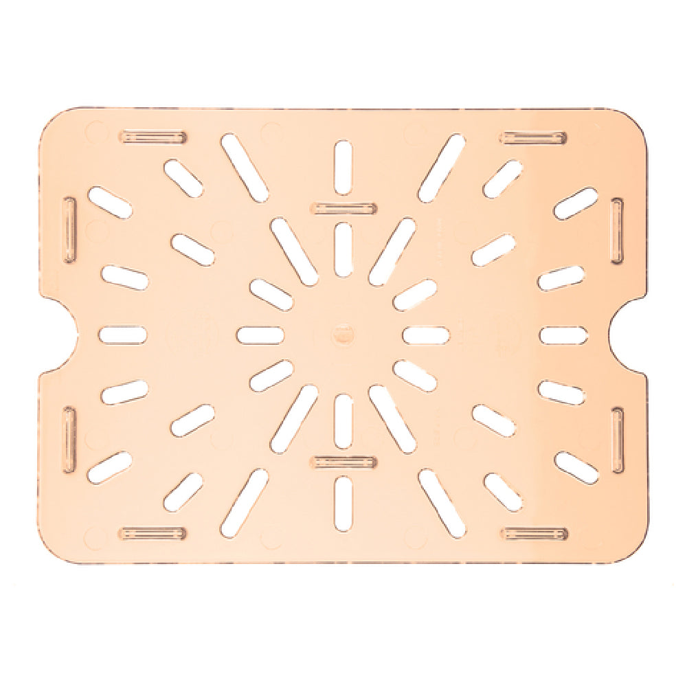 The Carlisle 1043513 Carlisle StorPlus™ High Heat Drain Shelf for 1/2-size Food Pan is a highly functional and versatile kitchen accessory designed for professional food service operations. This footed drain shelf is specifically engineered to fit 1/2-size food pans, offering a practical solution for draining excess liquids while maintaining food quality. Constructed from durable polyether sulfone, it is capable of withstanding a broad temperature range from -40°F to 380°F, ensuring reliability in both freezing and high-heat applications. The notched design enhances its adaptability and makes it ideal for a variety of culinary settings. The amber color not only adds an aesthetic appeal but also helps in quick identification in busy kitchen environments. Being dishwasher and microwave safe, it ensures ease of cleaning and convenience of use in food preparation areas. Certified by NSF and BPA free, the Carlisle 1043513 adheres to stringent safety and health standards, making it a safe choice for food contact. Proudly made in the USA, this high heat drain shelf is crafted to support efficient and hygienic operations within commercial kitchens, catering businesses, and other food service establishments, delivering exceptional performance and durability in every use.