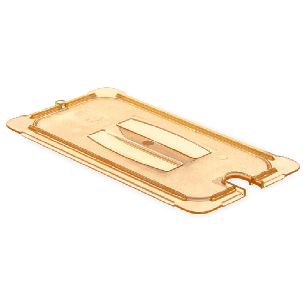 The Carlisle 10471U13 Carlisle StorPlus™ High Heat Universal Lid for 1/3-size Food Pan is a versatile and essential component for any professional kitchen. This handled, notched, and solid lid is designed to fit 1/3-size food pans, offering a stackable solution to maximize storage efficiency. With a temperature range of -40°F to 380°F, it is suitable for both cold and hot applications, adapting seamlessly to various culinary environments. Constructed from polyether sulfone, the lid boasts an amber hue and is BPA-free, ensuring safety and durability. Its textured non-slip finish enhances grip, adding to its practical design. The Carlisle 10471U13 lid is dishwasher safe, facilitating easy cleaning and maintenance. Furthermore, its NSF certification guarantees compliance with public health and safety standards. Proudly made in the USA, this lid is an ideal choice for food service operations seeking reliable and high-quality kitchenware. Its robust construction and thoughtful features make it indispensable for sectors ranging from catering to institutional food service settings, where maintaining food safety and operational efficiency are paramount.
