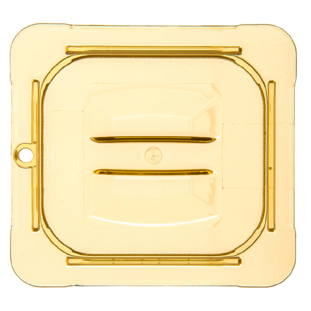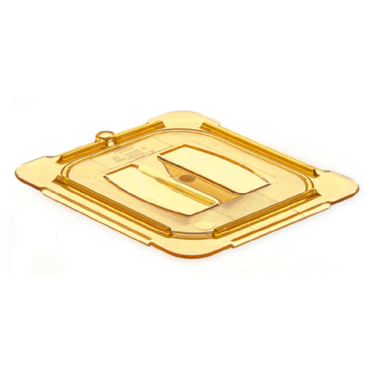 The Carlisle 10510U13 Carlisle StorPlus™ High Heat Universal Lid for 1/6-size food pan is engineered to meet the demanding needs of various food service environments, combining functionality with durability. This lid is constructed from polyether sulfone, an advanced material known for its high heat resistance, allowing it to withstand temperatures ranging from -40°F to 380°F. Its solid, handled design ensures ease of use and enhances operational efficiency in fast-paced kitchen settings. The lid's stackable feature maximizes storage space, providing convenience for establishments with limited storage facilities. A textured non-slip finish contributes to safe handling, reducing the risk of accidents in busy kitchens. As a BPA-free product, it aligns with health and safety standards, further attested by its NSF certification. The amber color offers a professional aesthetic while also making it easy to identify, and its dishwasher-safe property ensures effortless cleaning, maintaining hygiene standards. Manufactured in the USA, the Carlisle 10510U13 lid is a versatile solution, adaptable for use in commercial kitchens, catering services, and other food service sectors, providing a reliable performance that caters to a variety of operational needs. This lid is particularly valuable for businesses prioritizing high heat resistance and efficient storage solutions.