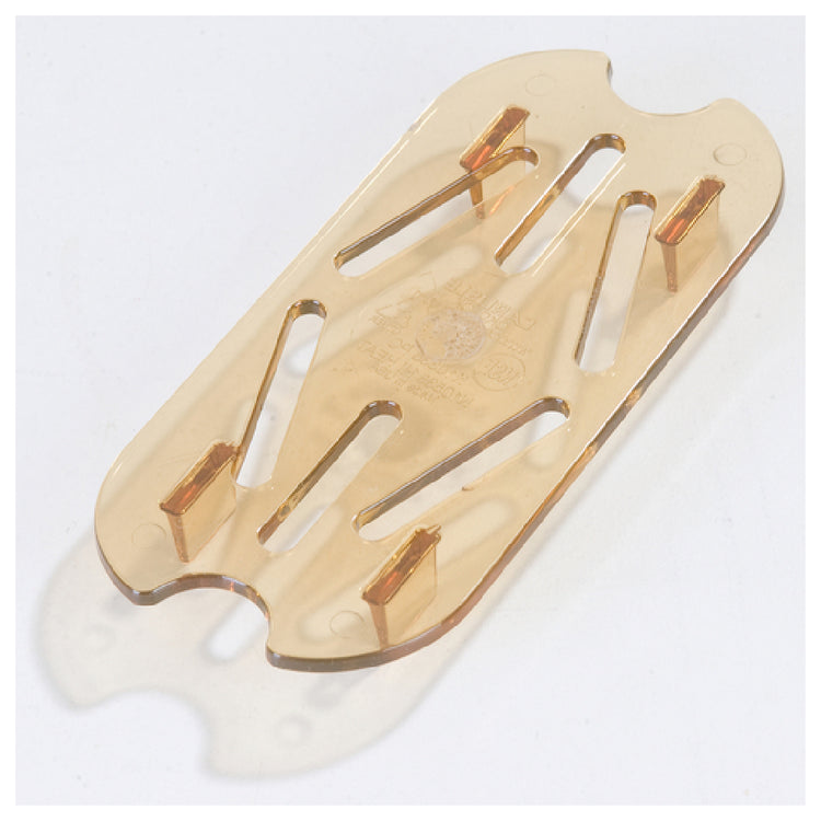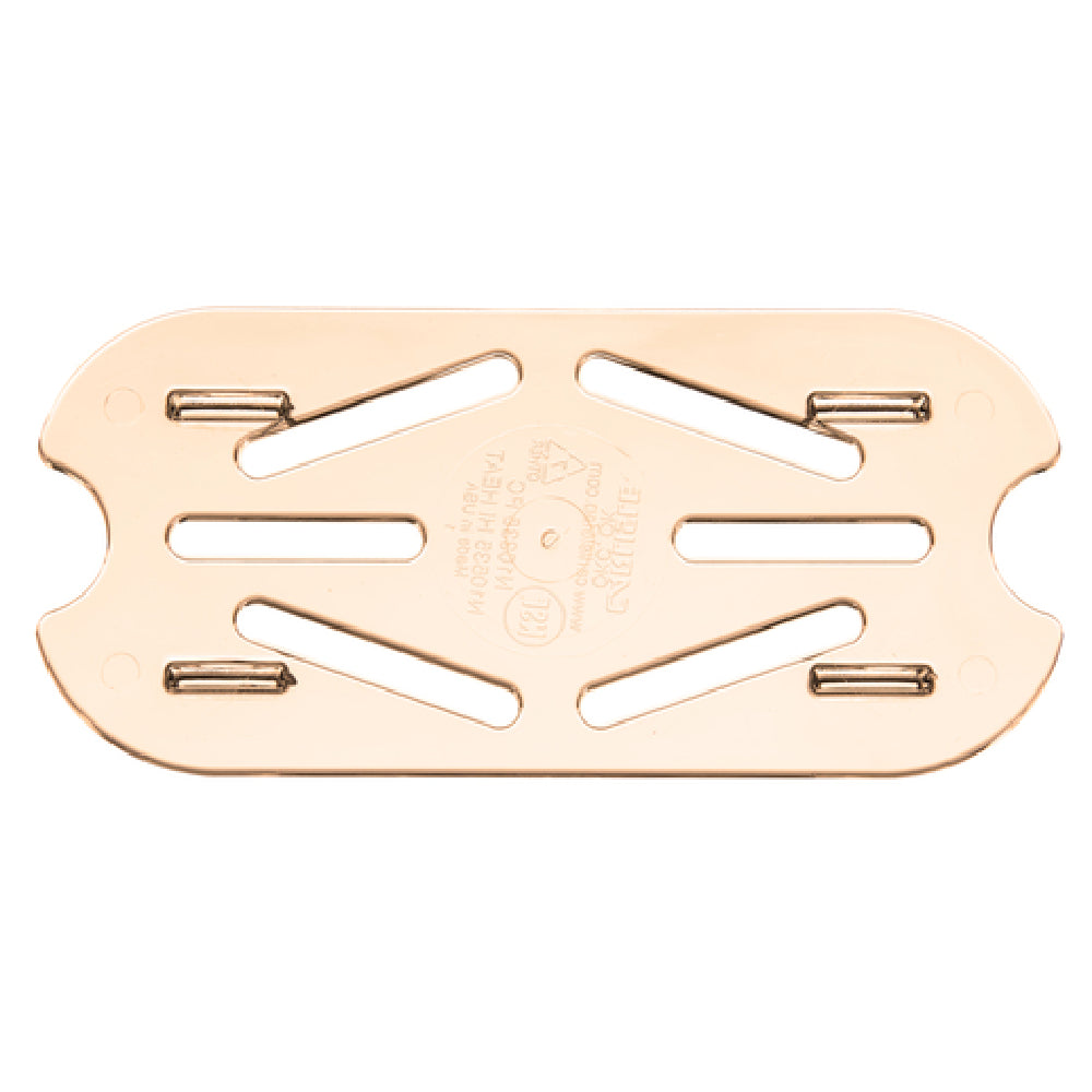 The Carlisle 1053513 Carlisle StorPlus™ High Heat Drain Shelf is expertly designed for seamless integration with a 1/9-size food pan. This footed drain shelf is constructed from high heat plastic, capable of withstanding the demanding thermal environments of commercial kitchens. Its amber hue not only adds visual appeal but also indicates its high-heat resistance capabilities. With its notched design, this shelf ensures efficient drainage, preventing food from sitting in excess liquids and maintaining optimal food quality. Moreover, it is both dishwasher and microwave safe, providing convenience and versatility in food preparation and storage. This product is NSF certified, underscoring its adherence to rigorous safety and health standards, while its BPA-free construction highlights a commitment to user safety and sustainability. Proudly made in the USA, the Carlisle 1053513 drain shelf is a reliable choice for food service operations seeking a durable, high-performance solution that enhances food quality and complies with industry standards.