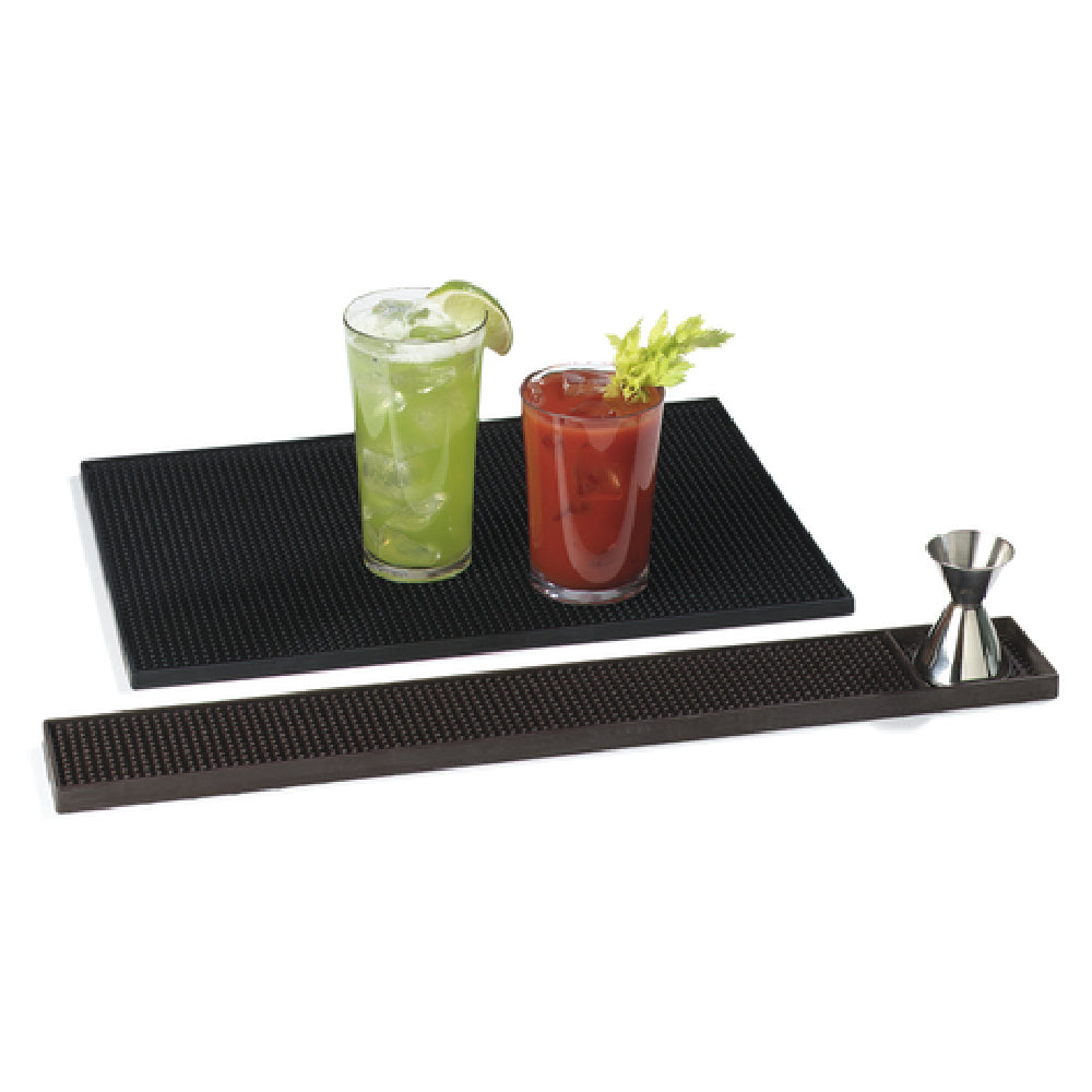 The Carlisle 1060103 Carlisle Service Mat 18"L x 12"W Sure-grip is a precision-engineered accessory designed to enhance the efficiency and safety of various service environments. Measuring 18 inches in length and 12 inches in width, this service mat is constructed from high-quality thermoplastic rubber, providing a non-slip surface that is essential for maintaining stability on slick surfaces. Its unique molded-in drainage pattern ensures that liquids are efficiently directed away from the surface, reducing the risk of spills and accidents in busy service areas. The mat's black coloration complements a wide range of decor styles, making it a versatile addition to any professional setting. Notably, the Carlisle Service Mat is dishwasher safe, facilitating effortless cleaning and maintenance, which is crucial for businesses prioritizing hygiene and cleanliness. This product serves a diverse range of market segments, including restaurants, bars, catering companies, and any other venues where maintaining a clean and safe surface is paramount. Its practical design and reliable construction make it an essential tool for professionals seeking to enhance the safety and functionality of their workspaces, while its durability ensures long-term use, providing exceptional value across various service industries.