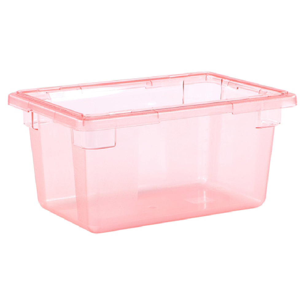 The Carlisle 10612C05 Carlisle StorPlus™ Food Storage Box is a versatile and robust solution for food storage needs, offering a spacious capacity of 5 gallons. Measuring 18 inches in length, 12 inches in width, and 9 inches in height, this storage box is meticulously engineered to meet the demands of diverse food service environments. Its color-coded design and reinforced corners ensure easy identification and enhanced durability, making it suitable for high-traffic kitchens. The stackable feature of this box maximizes storage efficiency, while the date and capacity indicators facilitate organized inventory management. Designed with easy-grip handles, it provides effortless handling and transport. Constructed from break-resistant polycarbonate, it boasts a transparent red finish that enhances visibility of contents, ensuring quick access to stored items. The textured non-slip finish provides added safety, preventing accidental slips during handling. This storage box is dishwasher safe, simplifying cleaning and maintenance, and is NSF certified, affirming its compliance with stringent health standards. Manufactured in the USA, the Carlisle StorPlus™ Food Storage Box is a reliable and practical choice for restaurants, catering businesses, and food processing facilities that prioritize both functionality and durability in their storage solutions.