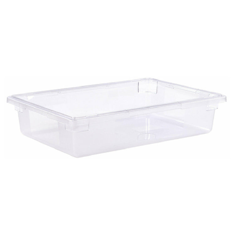 The Carlisle 1062107 Carlisle StorPlus™ Food Storage Box 8-1/2 Gallon 26"L X 18"W X 6"H is a versatile solution for commercial kitchens and food service operations looking for efficient and durable storage options. With a substantial capacity of 8-1/2 gallons and dimensions of 26 inches in length, 18 inches in width, and 6 inches in height, this food storage box effectively accommodates a variety of food items. The reinforced corners enhance its durability, making it break-resistant, while its stackable design optimizes space in storage areas. Additionally, the box features easy-grip handles that facilitate safe handling and transport. For added convenience, it includes date indicators, aiding in inventory management and ensuring freshness. The textured non-slip finish provides extra grip, reducing the risk of accidents. Made from clear polycarbonate, the StorPlus™ Food Storage Box offers visibility of contents and withstands the demands of a busy kitchen environment. It is dishwasher safe, ensuring easy maintenance and sanitation. This product is NSF certified, aligning with food safety and quality standards, and is proudly made in the USA, reflecting robust manufacturing standards. Suitable for various segments within the food industry, this storage box is an essential component for efficient kitchen operations.