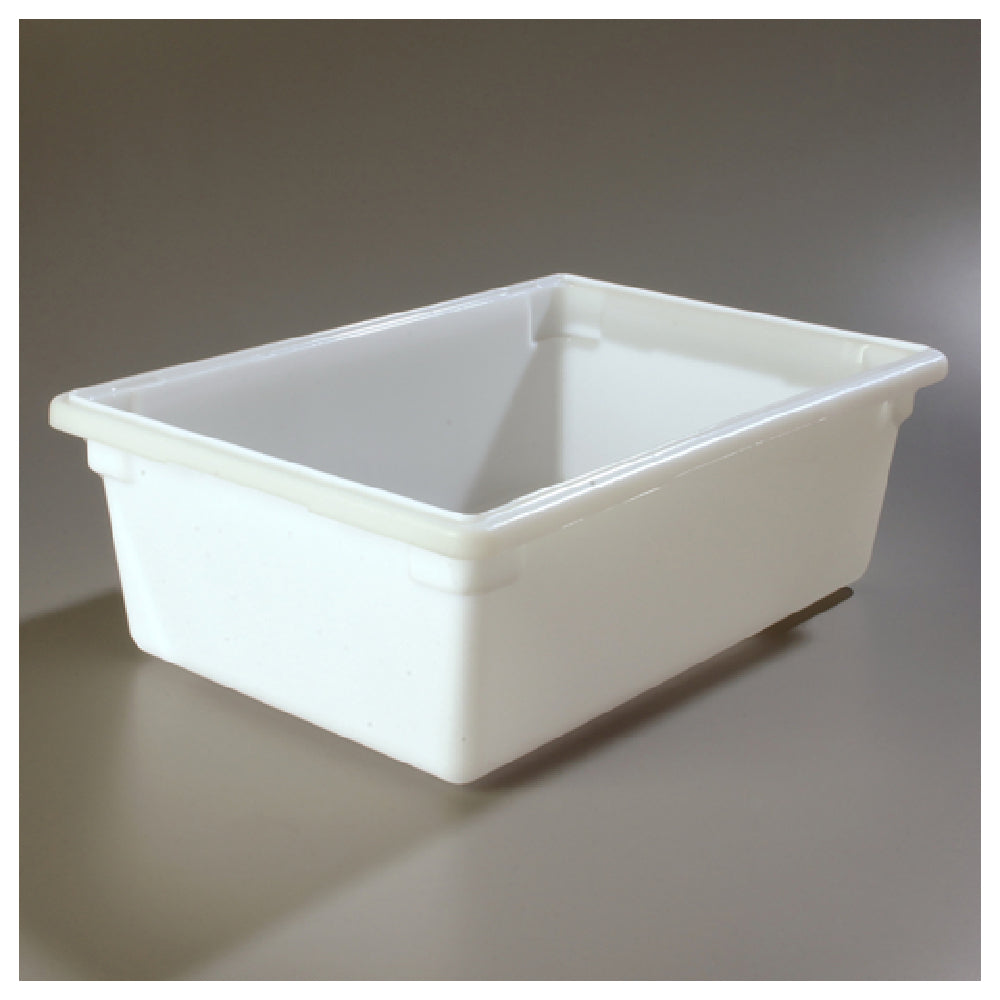 The Carlisle 1064202 Carlisle StorPlus™ Food Storage Box 12-1/2 Gallon 26"L X 18"W X 9"H is a highly versatile storage solution designed for a range of food service environments. This storage box has a generous capacity of 12-1/2 gallons, making it perfect for storing bulk ingredients or prepared foods. Its dimensions of 26 inches in length, 18 inches in width, and 9 inches in height ensure ample space, while the reinforced corners contribute to its durability and longevity. The stackable design enhances space efficiency, which is essential for busy kitchens with limited storage areas. Constructed from white polyethylene, this storage box is both BPA-free and NSF certified, ensuring compliance with safety standards and suitability for food contact. Dishwasher safe, it ensures easy cleaning and maintenance, supporting hygienic practices in food handling. Proudly made in the USA, the Carlisle StorPlus™ Food Storage Box is a dependable choice for restaurants, catering services, and other food service operations requiring reliable and safe food storage solutions. Its robust construction and thoughtful design make it an essential component in any professional kitchen.