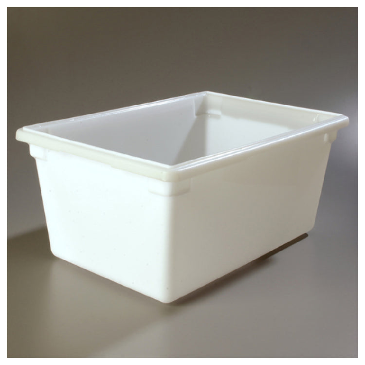 The Carlisle 1064302 Carlisle StorPlus™ Food Storage Box is a versatile container designed for efficient food storage with a substantial capacity of 16.6 gallons, perfect for industries requiring large-scale food storage solutions. Measuring 26 inches in length, 18 inches in width, and 12 inches in height, this storage box is engineered with reinforced corners, enhancing its durability and ability to withstand the demanding conditions of commercial kitchens, catering services, and food processing plants. The stackable feature of this box maximizes storage space, making it ideal for operations with limited room. Crafted from polyethylene, the box is both dishwasher safe and BPA free, ensuring safety and ease of maintenance. Its white color not only offers a clean appearance but also aligns with industry standards for food safety. Certified by NSF, this product meets rigorous public health and safety guidelines, suitable for use in professional settings. Proudly made in the USA, the Carlisle StorPlus™ Food Storage Box combines practical design with reliable construction, catering to the needs of diverse market segments within the food service industry that prioritize hygiene, efficiency, and compliance.