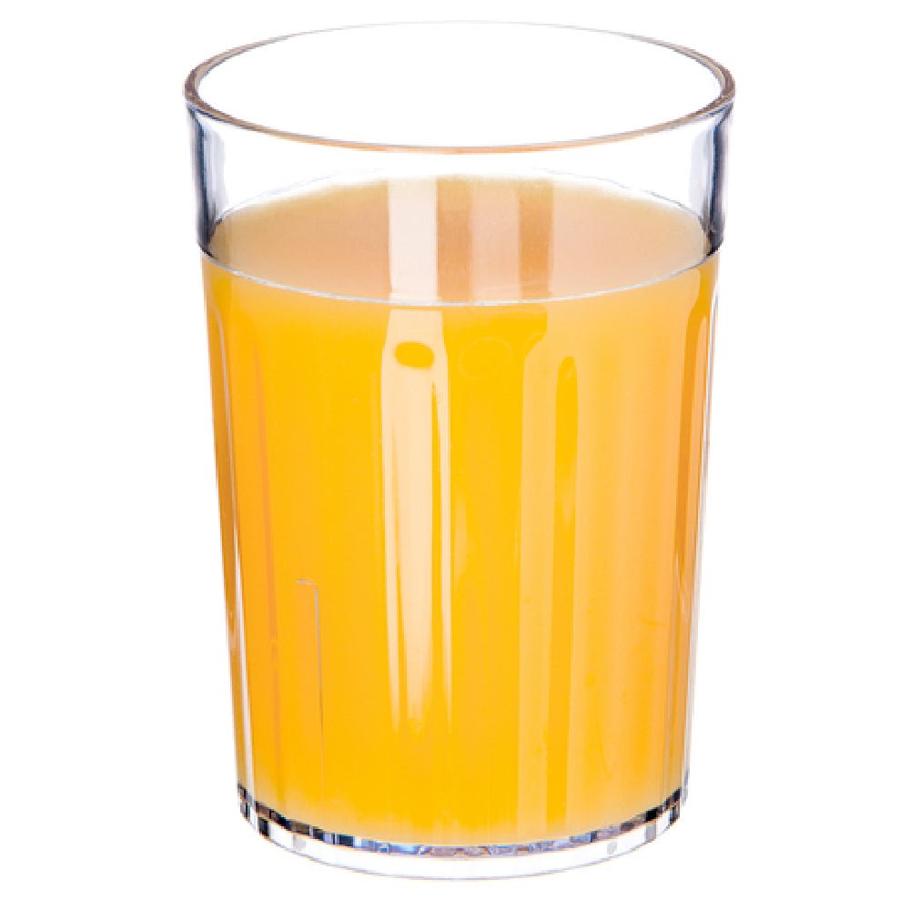 The Carlisle 111007 Carlisle Bistro™ Tumbler 10 Oz. (10.20 Oz. Flush Fill) Fluted is a meticulously designed drinkware solution tailored for versatile use across various segments such as restaurants, catering services, and event spaces. This tumbler, with a volume capacity of 10 ounces and a flush fill of 10.20 ounces, offers ample space for serving a variety of beverages. Its fluted design enhances grip while also lending an elegant aesthetic to any table setting. Engineered for durability, the tumbler is chip, shatter, break, and stain-resistant, ensuring longevity and consistent performance in high-traffic environments. Made from SAN (styrene acrylonitrile), it is both clear for visibility and BPA-free, catering to health-conscious consumers. The tumbler is dishwasher safe, simplifying cleaning processes, and is recyclable, aligning with sustainable practices. Additionally, its stackable nature makes it convenient for storage, optimizing space in busy kitchens or event setups. This product, packed by 72 each per case, is an ideal choice for businesses seeking reliable and practical drinkware solutions that prioritize quality and user safety. The Carlisle Bistro™ Tumbler 10 Oz. stands out as a multifunctional asset, combining superior material properties with user-friendly features to meet diverse operational needs.