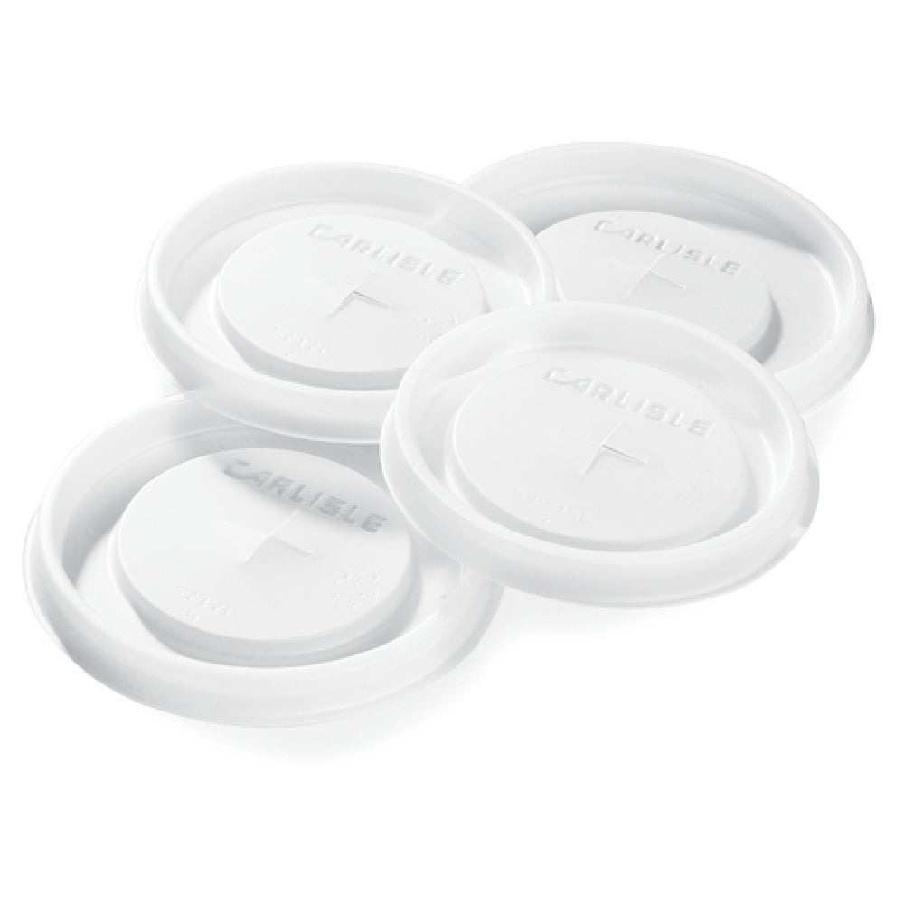 The Carlisle 1110L30 Carlisle Disposable Lid is a versatile and essential accessory for beverage service, designed to fit precisely onto 10 oz. Bistro™ tumblers model 1110, 8 oz. Lorraine™ tumblers model 43648, and 10 oz. Cambro® tumblers model LT10. Made from recyclable polystyrene, this lid is not only environmentally friendly but also provides a straw slot for convenient sipping on the go. Its translucent design ensures easy identification of the beverage inside, enhancing user experience in bustling environments like cafes, catering services, and restaurants. AIB Certified, this product guarantees adherence to rigorous industry standards, ensuring reliability and quality. Manufactured in the USA, the Carlisle 1110L30 lid supports domestic production standards and is available in bulk packaging, with 1,000 pieces per case, making it a cost-effective solution for large-scale operations requiring efficient inventory management. Its compatibility with multiple tumbler models and recyclable nature makes it an attractive option for businesses aiming to balance practicality with environmental responsibility. This lid is a smart choice for professionals in the food and beverage industry looking to optimize their service efficiency and sustainability efforts.