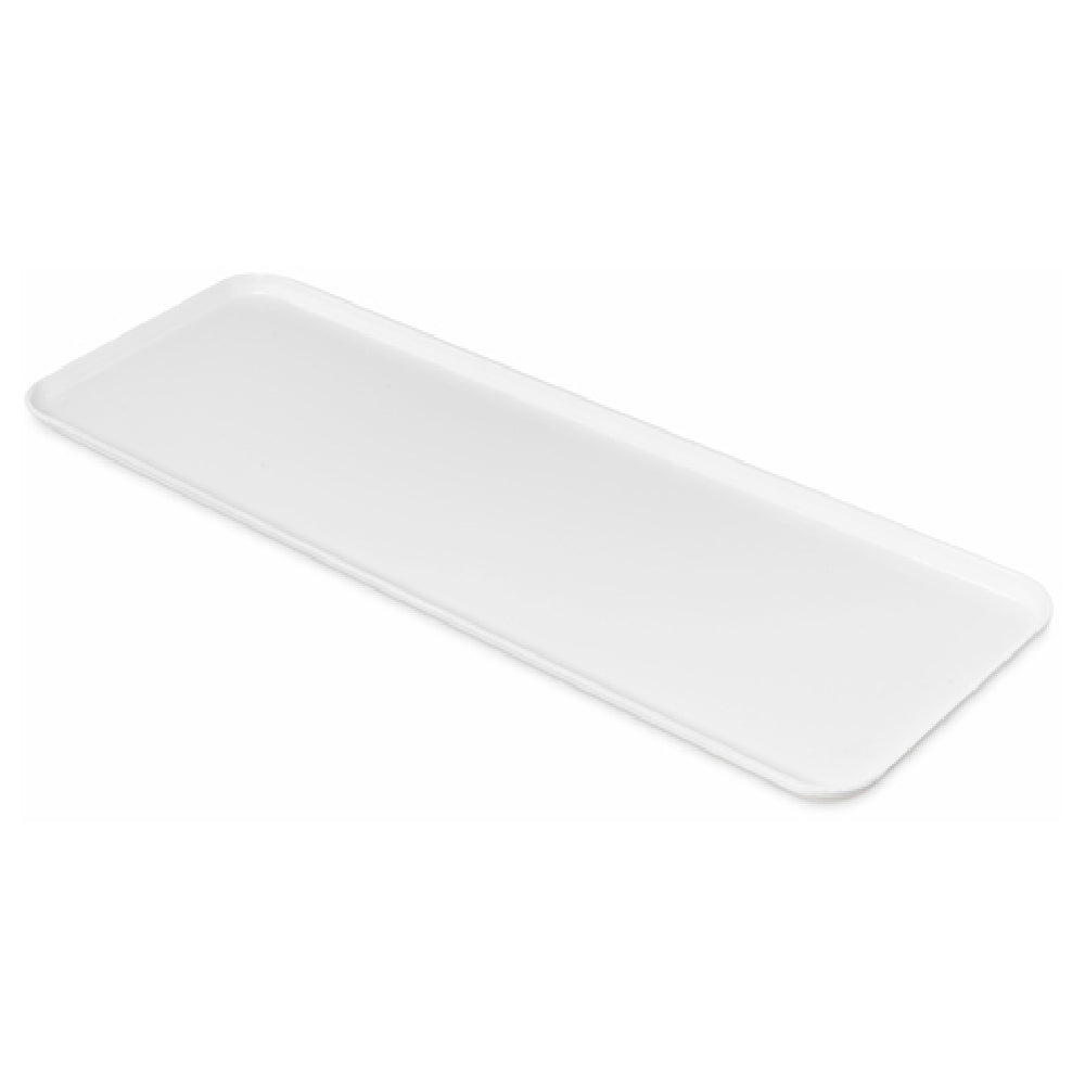 The Carlisle 1230FMT301 Carlisle Market Tray 30"L X 12-7/16"W X 1-1/20"H Air-flow Corners is a specialized tray designed for market and food service environments, offering unique features that cater to a variety of industry needs. This market tray measures 30 inches in length, 12-7/16 inches in width, and 1-1/20 inches in height, providing ample space for the display and organization of goods. Constructed from metal rod reinforced fiberglass, it ensures durability and resilience in demanding settings. The tray's pearl white finish not only adds an aesthetic appeal but also complies with NSF standards, guaranteeing its safety and quality for food service use. A standout feature is its air-flow corners, which are engineered to promote better air circulation, aiding in product freshness and longevity. This feature is particularly beneficial for businesses aiming to maintain the quality of perishable goods. These trays are ideal for supermarkets, bakeries, and food displays, offering a reliable and efficient solution for product presentation. The combination of sturdy construction and thoughtful design makes the Carlisle 1230FMT301 a versatile asset in any commercial setting, ensuring both functionality and style in professional food service and retail environments.