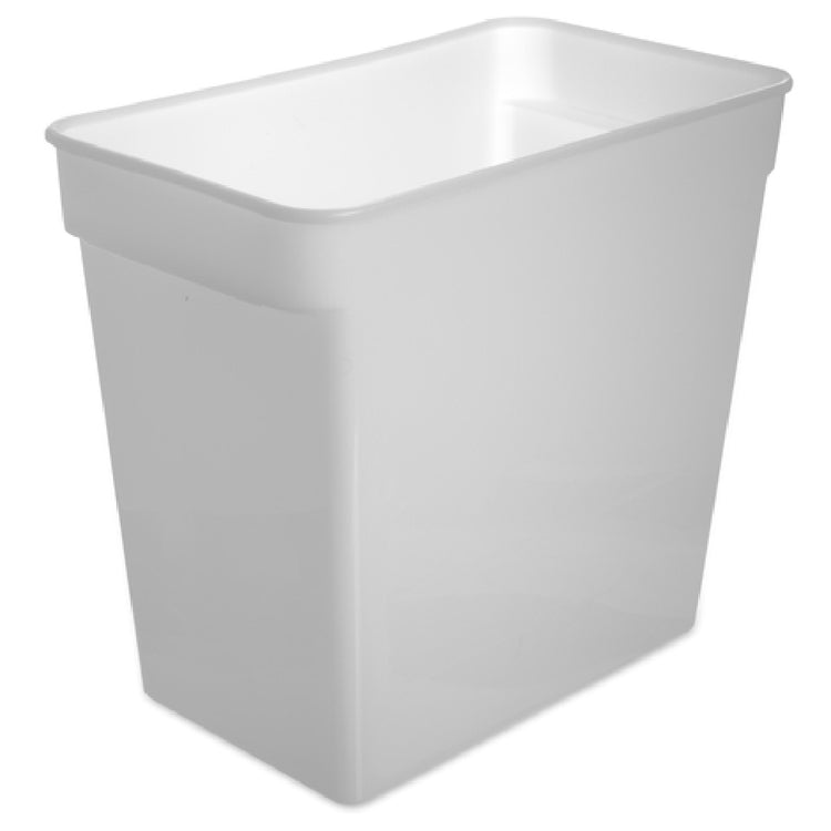 The Carlisle 162902 Carlisle StorPlus™ Economical Food Storage Container is an 18-quart solution designed to meet the diverse storage needs of professional kitchens and food service operations. With dimensions of 14-2/11 inches in length, 8-5/16 inches in width, and 12-3/4 inches in height, this rectangular container offers ample space for storing a variety of ingredients. Its molded-in capacity indicators allow for precise volume measurements, facilitating efficient inventory management. Crafted from durable polypropylene, the container ensures longevity while being dishwasher safe for easy cleaning. The white color of the container not only provides a clean and professional appearance but also complies with NSF standards, ensuring it meets public health and safety requirements. Being BPA-free, it guarantees safe food storage without the risk of harmful chemicals. Proudly made in the USA, the Carlisle StorPlus™ container exemplifies quality and reliability, making it an indispensable asset for restaurants, catering businesses, and institutional kitchens seeking dependable storage solutions. This container stands out in the industry for its practicality, safety features, and compliance with rigorous standards, making it an essential tool for efficient food management and storage.