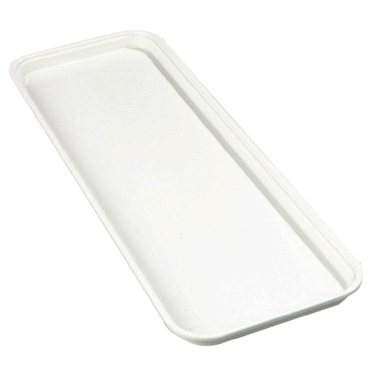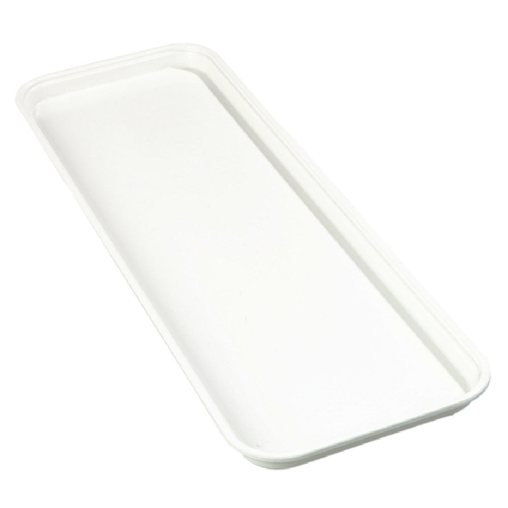 The Carlisle 269FMT301 Carlisle Market Tray 25-1/2"L X 8-3/4"W X 1-1/8"H Air-flow Corners is a precision-engineered tray designed for optimal functionality across various market segments. Its dimensions of 25-1/2 inches in length, 8-3/4 inches in width, and 1-1/8 inches in height make it a versatile choice for display and serving applications. The tray is constructed from metal rod reinforced fiberglass, providing exceptional durability and strength, which is particularly beneficial in high-traffic environments such as cafeterias, food courts, and buffets. The air-flow corners are a unique feature, ensuring proper ventilation and reducing moisture accumulation, thereby maintaining the freshness of displayed food items. The tray is finished in a sleek pearl white color, enhancing its aesthetic appeal and allowing it to seamlessly integrate with various decors. It is NSF certified, assuring users of its compliance with rigorous public health and safety standards. This makes the Carlisle Market Tray an excellent solution for businesses seeking reliable and compliant food service equipment. Its robust construction and thoughtful design cater to the needs of professional kitchens, retail food outlets, and catering services, providing a dependable platform for food presentation and service.