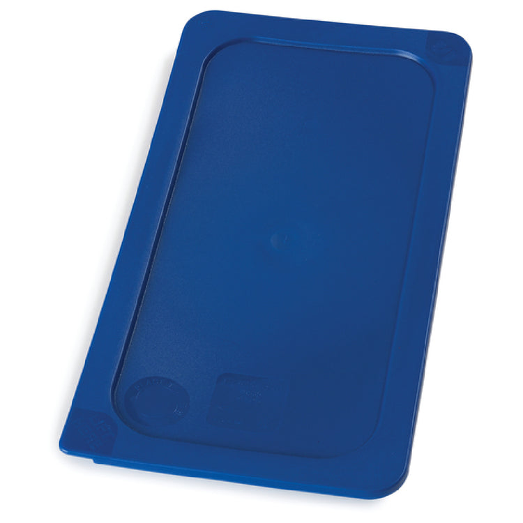 The Carlisle 3058060 Carlisle Smart Lid™ Food Pan Lid is meticulously designed to fit 1/3 size pans, providing a seamless snap-on feature with an easy-grip corner tab for effortless handling. This lid stands out in various segments of the food service industry due to its practical and durable design. Crafted from polyethylene, it ensures longevity and resistance to wear and tear, while its leak-resistant properties make it a reliable choice for preserving food quality. With a wide temperature range of -40°F to 180°F (-40°C to 82°C), it caters to both hot and cold food storage needs, making it versatile for kitchens dealing with diverse culinary requirements. Furthermore, the molded-in lid size ensures compatibility and ease of use. This product is dishwasher safe, allowing for convenient cleaning and maintenance, crucial for busy food service environments. Its blue color not only adds a touch of distinction but also aids in quick identification in a bustling kitchen setting. Notably, the Carlisle Smart Lid™ is BPA-free, reinforcing its commitment to health and safety standards, and proudly made in the USA, emphasizing quality manufacturing. This lid is an indispensable asset for restaurants, catering services, and any commercial kitchen seeking efficient and dependable food storage solutions.