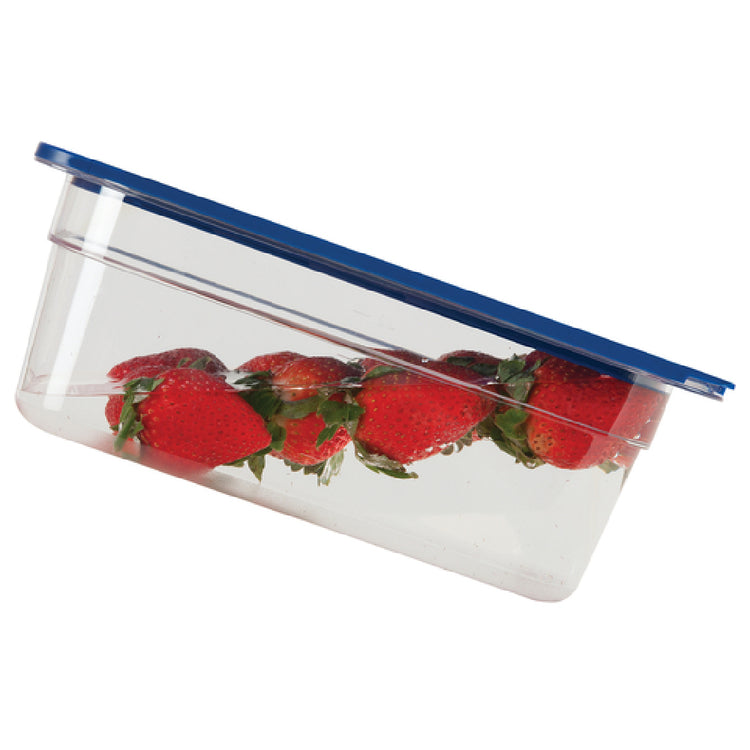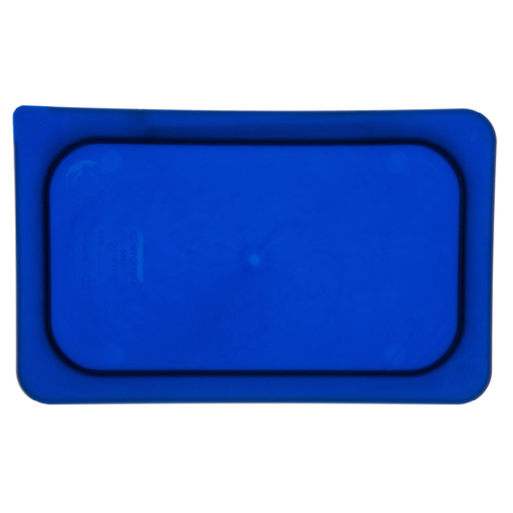 The Carlisle 3058160 Carlisle Smart Lid™ Food Pan Lid is a versatile and essential addition to any culinary setting, designed to fit all 1/4 size pans seamlessly. Crafted from durable polyethylene, this blue lid embodies both functionality and safety, being BPA-free and proudly made in the USA. Its solid construction is complemented by a rounded rim and an innovative inside seal, making it leak-resistant and ensuring contents remain secure during storage and transport. The lid withstands a broad temperature range of -40°F to 180°F (-40°C to 82°C), making it suitable for various food storage conditions, from cold refrigeration to warmer environments. Additionally, its dishwasher-safe feature facilitates easy cleaning and maintenance, thereby supporting efficient kitchen operations. The Carlisle Smart Lid™ is an ideal choice for commercial kitchens, catering services, and food service establishments that require a reliable solution for preserving food quality and preventing contamination. Its robust design and practical benefits make it a valuable asset for professionals in the food industry who seek a dependable and versatile food storage accessory.