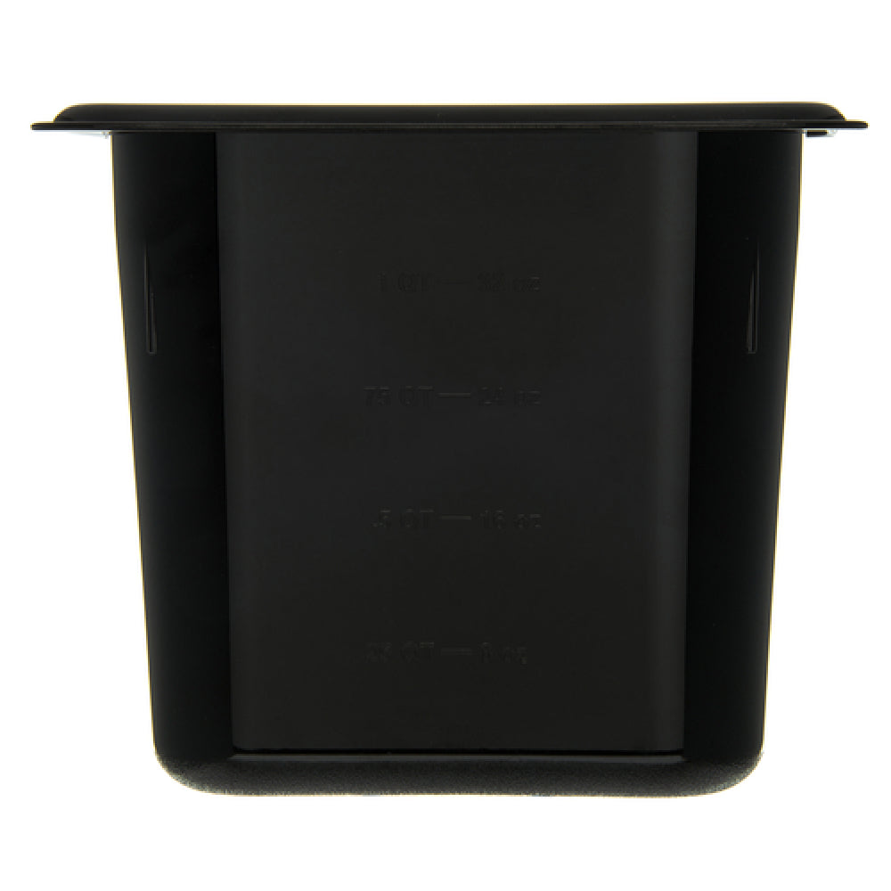 The Carlisle 3068803 Carlisle Food Pan 1/9 Size 1.4 Qt. Capacity is a meticulously crafted solution for food storage and handling, designed to meet the rigorous standards of the foodservice industry. With dimensions of 6-3/4" x 4-1/4" x 6", this food pan offers a convenient 1.4-quart capacity that suits a variety of applications, from commercial kitchens to catering services. The pan features molded-in capacity indicators, providing precise measurements for efficient portion control. Its impressive temperature range of -40° - 212° F ensures versatility, making it suitable for both cold storage and hot food preparation. Constructed with reinforced top and bottom corners, it promises durability and longevity in high-traffic environments. The spoonable bottom design promotes easy serving and minimizes waste, while the smooth interior finish facilitates effortless cleaning. Its textured non-slip exterior finish offers a secure grip, reducing the risk of spills and accidents. Made from high-quality polycarbonate, the pan is both dishwasher safe and NSF certified, underscoring its commitment to safety and sanitation. Available in sleek black, this food pan is proudly manufactured in the USA, making it a reliable and essential asset for diverse sectors within the food industry.