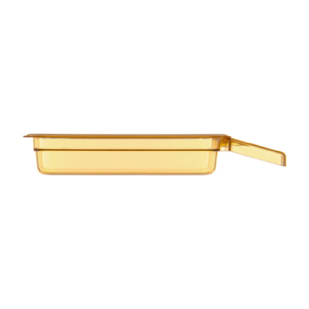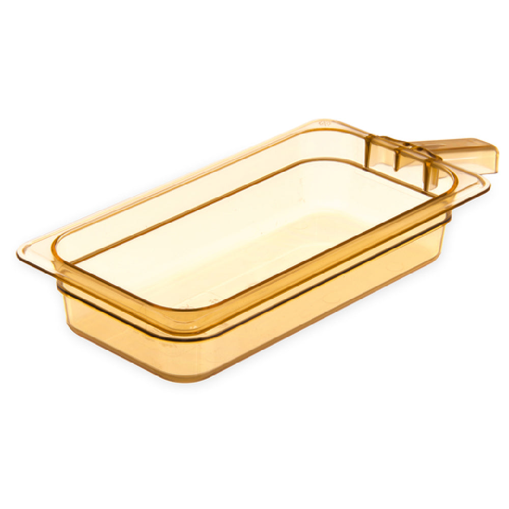 The Carlisle 30860H13 Carlisle StorPlus™ High Heat Hot Food Pan 1/3 Size 2.4 Qt. Capacity is a meticulously engineered kitchen essential designed to withstand a wide temperature range of -40°F to 380°F, making it ideal for various culinary applications. With a capacity of 2.4 quarts and a depth of 2-1/2 inches, this pan is perfectly suited for both hot and cold food storage, accommodating diverse kitchen needs. Its single handle and easy-lift notch ensure convenient handling and maneuverability, while the integrated capacity indicators support precise portion control. Constructed from durable polyether sulfone, this pan is both break and stain-resistant, ensuring longevity and maintaining its aesthetic appeal over time. The stackable design optimizes space efficiency, and its compatibility with dishwashers and microwaves offers added versatility in professional kitchens. The pan is BPA free and meets NSF certification standards, aligning with rigorous safety and quality benchmarks. Proudly made in the USA, it also complies with the EN631-1 Euro Norm standards, highlighting its global usability. The amber hue adds a touch of sophistication, making it a valuable asset for food service establishments seeking reliability and functionality in their high heat food containers.