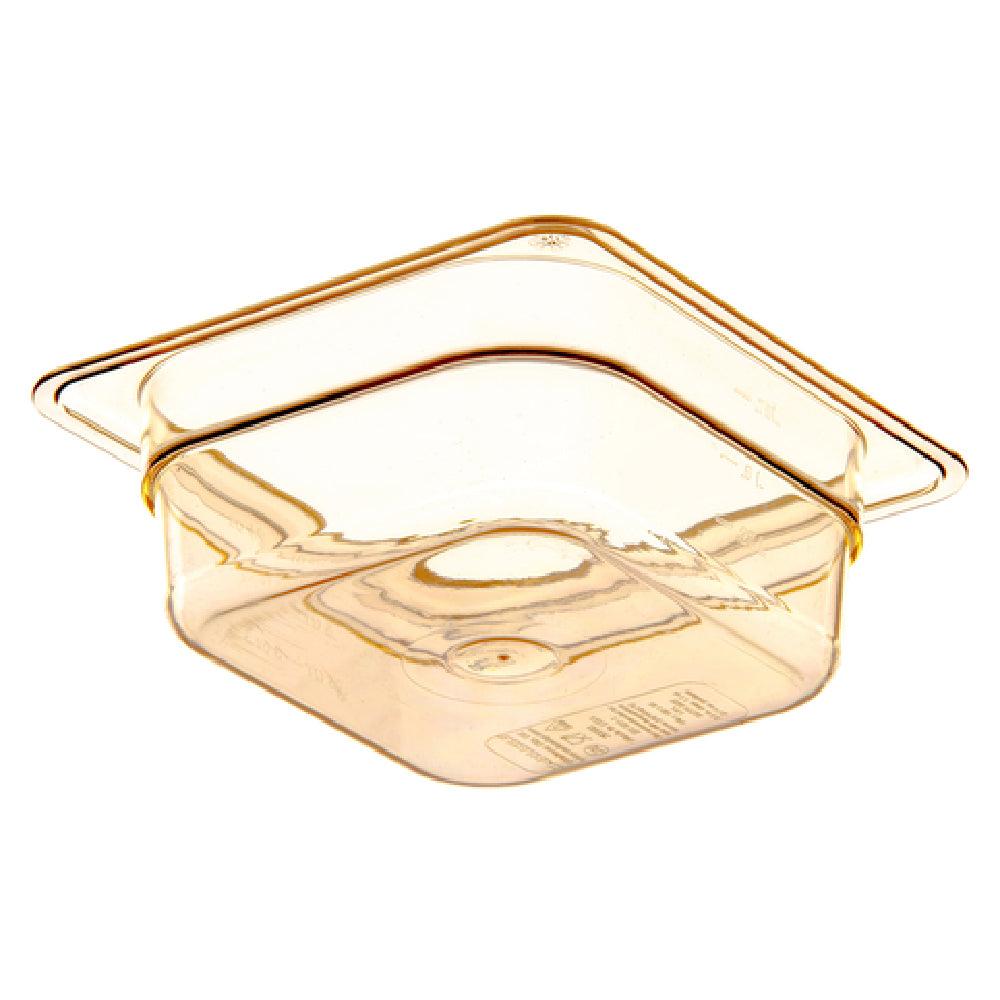 The Carlisle 3088313 Carlisle StorPlus™ High Heat Hot Food Pan 1/6 Size 2-1/2" Deep is a versatile and durable solution for food service professionals in need of high-quality food storage options. Crafted from polyether sulfone, this hot food pan is designed for use in demanding environments, with an impressive heat resistance of up to 380°F. Its 1/6 size and 2-1/2" depth make it suitable for a variety of applications, from buffet lines to kitchen prep areas. The pan features an easy-lift notch for convenient handling, while its stackable design ensures efficient storage and organization. Break and stain resistance enhance its longevity, making it a reliable choice for high-volume operations. The inclusion of capacity indicators aids in precise portion control, essential for maintaining consistency in food service. Additionally, the pan is dishwasher and microwave safe, further supporting its use in fast-paced settings. As a BPA-free product, it aligns with health and safety standards, and its NSF certification underscores its compliance with industry regulations. Proudly made in the USA, the amber-colored Carlisle 3088313 offers a combination of performance and safety, making it a valuable asset in any professional kitchen or catering operation.
