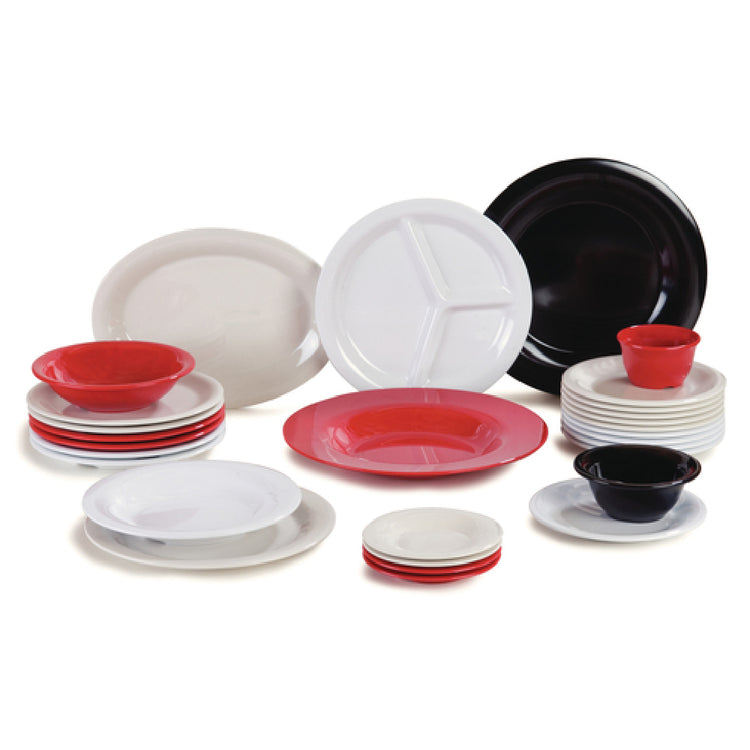 The Carlisle 3301805 Carlisle Sierrus™ Pie Plate 6-1/2" Dia. Wide Rim is an expertly designed piece for both commercial and domestic kitchens. With a diameter of 6-1/2 inches, it is perfect for individual-sized servings or small portions, making it ideal for cafes, restaurants, and home bakers. Made from high-quality melamine, this pie plate is break-resistant, ensuring durability and long-lasting use in high-traffic environments. Its wide rim design not only enhances the presentation of culinary creations but also aids in easy handling. The Carlisle 3301805 is notable for its resistance to drawing heat or cold from food, maintaining the desired temperature of your culinary delights. This plate is dishwasher safe, ensuring convenience and ease of maintenance for busy kitchen operations. Furthermore, it features an elevated foot design, promoting stability during use. Available in a striking red color, it adds a splash of vibrancy to table settings. Being BPA Free and NSF certified, this pie plate adheres to stringent safety standards, ensuring it is safe for food contact. The Carlisle 3301805 is versatile and suitable for a variety of market segments, from casual dining establishments to high-end culinary settings, providing a reliable and stylish solution for serving pies. Minimum order quantity is 96 units.