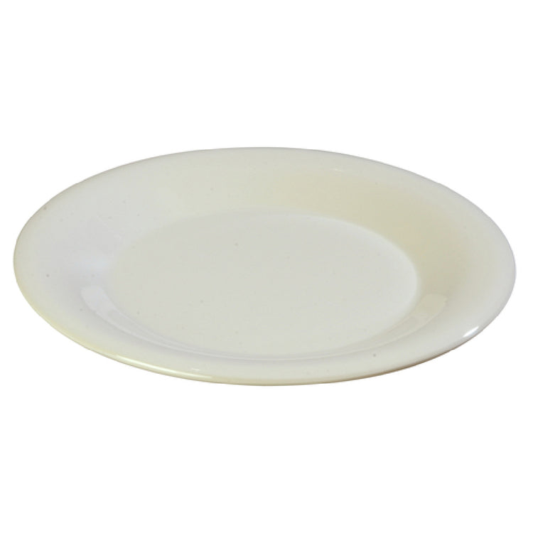 The Carlisle 3301842 Carlisle Sierrus™ Pie Plate 6-1/2" Dia. Wide Rim is an expertly crafted dish designed to meet the rigorous demands of various foodservice markets. With a diameter of 6-1/2 inches, this pie plate features a wide rim that enhances its functionality and presentation. Constructed from durable melamine, it is both break-resistant and dishwasher safe, ensuring longevity and ease of maintenance in busy kitchens. The innovative elevated foot design aids in stability and presentation, making it an excellent choice for professional chefs and caterers. Notably, this pie plate resists drawing heat or cold from food, maintaining the desired temperature of your culinary creations. Its bone color adds a touch of elegance to any table setting, and being BPA Free, it aligns with modern safety standards. This product is NSF certified, which underscores its compliance with public health and safety standards, making it suitable for foodservice environments that prioritize hygiene and quality. The Carlisle Sierrus™ Pie Plate is a versatile and reliable option for bakeries, restaurants, and catering services seeking a quality dish that combines style and practicality.