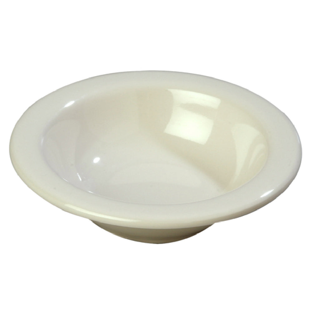 The Carlisle 3304242 Carlisle Sierrus™ Rimmed Fruit Bowl is a meticulously designed piece, ideal for a variety of dining settings. With a capacity of 4-1/2 ounces and a diameter of 4-3/4 inches, it provides the perfect size for serving fruits or small portions of other dishes. Crafted from high-quality melamine, this bowl is not only break-resistant but also engineered to withstand significant temperature fluctuations, ensuring it does not draw heat or cold from the food it contains. This feature makes it particularly suitable for environments requiring consistent food temperatures, such as buffets and catering services. The elevated foot design adds to its stability and aesthetic appeal, making it a stylish addition to both casual and formal table settings. Furthermore, this bowl is dishwasher safe, simplifying the cleanup process and enhancing operational efficiency in fast-paced food service environments. Its bone color complements a wide range of tableware, providing versatility for different dining atmospheres. Being BPA Free and NSF certified, it adheres to health and safety standards, making it a practical choice for establishments that prioritize public health compliance. The Carlisle Sierrus™ Rimmed Fruit Bowl combines functionality with durability, catering to the diverse needs of the hospitality industry.