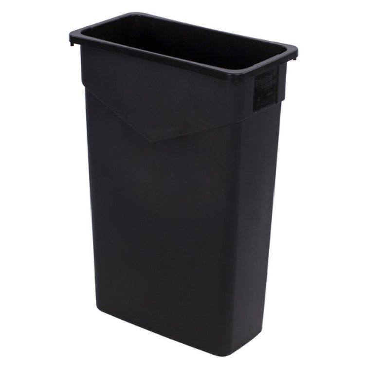 The Carlisle 34202303 Carlisle Trimline™ Waste Container 23 Gallon Rectangular is a versatile and durable waste management solution, ideal for various industry segments, including hospitality, healthcare, and commercial facilities. This waste container is designed with a 23-gallon capacity, offering ample space for waste disposal in high-traffic areas, thus reducing the frequency of emptying and increasing efficiency. Constructed from heavy-duty polyethylene, this container ensures longevity and resilience against wear and tear, making it suitable for both indoor and outdoor environments. The integrated corner tabs enhance the stability of the trash liners, preventing slippage and ensuring a tidy appearance. Additionally, the bottom helper handles are strategically integrated to facilitate effortless lifting and handling during waste disposal operations, making it user-friendly and practical for janitorial staff. The rectangular design of the Carlisle Trimline™ Waste Container maximizes space utilization, allowing it to fit seamlessly against walls or in tight areas, optimizing space in crowded environments. Available in a classic black color, it complements various decor styles while maintaining a professional aesthetic. The Carlisle 34202303 not only meets the demands of rigorous daily use but also provides a practical, efficient waste management solution for diverse operational settings.
