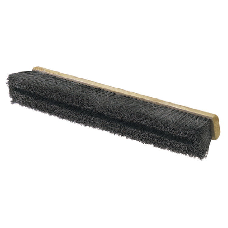 The Carlisle 360242403 Carlisle Flo-Pac® Floor Sweep Medium 24" Hardwood Block is a versatile cleaning tool designed for efficient floor maintenance across various industries. This product features a durable 24-inch hardwood block that provides a sturdy foundation, enhancing its longevity and reliability over repeated use. The sweep's unique bristle design combines 3-inch black horsehair with polypropylene bristles, which are reinforced with a wire center to ensure durability and effective cleaning performance. This specific bristle combination is ideal for sweeping a variety of surfaces, making it suitable for environments such as commercial spaces, warehouses, and industrial settings where different types of debris are encountered. The Carlisle Flo-Pac® Floor Sweep is sold without a handle, offering flexibility for users to attach a handle of choice based on their specific needs and preferences. This adaptability makes it a practical choice for businesses looking to maintain a clean and safe working environment with a product that fits seamlessly into existing cleaning equipment inventories. With its thoughtfully designed features, the Carlisle 360242403 model stands out as a reliable and efficient option for those seeking a medium-duty sweeping solution.