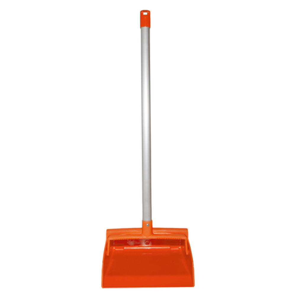 The Carlisle 361410EC24 Carlisle Sparta® Dust Pan is a practical cleaning tool designed for efficiency and convenience in various environments, making it suitable for professional cleaning services, educational facilities, and industrial settings. With a width of 12 inches, this dust pan ensures coverage of larger debris collection in fewer sweeps. The inclusion of a hanging hole allows for easy storage and accessibility, optimizing space in janitorial closets. A standout feature is its locking yoke, which secures the dust pan to the handle during use, enhancing stability and control. The serrated edge is engineered to efficiently capture fine particles, leaving surfaces cleaner. Constructed with an aluminum handle, the dust pan provides a lightweight yet durable design, ensuring long-term use without excessive strain on the user. The handle, paired with a polypropylene base, offers a robust yet ergonomic grip, minimizing user fatigue during prolonged use. The vibrant orange color not only enhances visibility for safety but also aids in quick identification among other cleaning tools. The Carlisle Sparta® Dust Pan thus combines practicality with durability, making it a reliable choice for various market segments requiring effective and durable cleaning solutions.