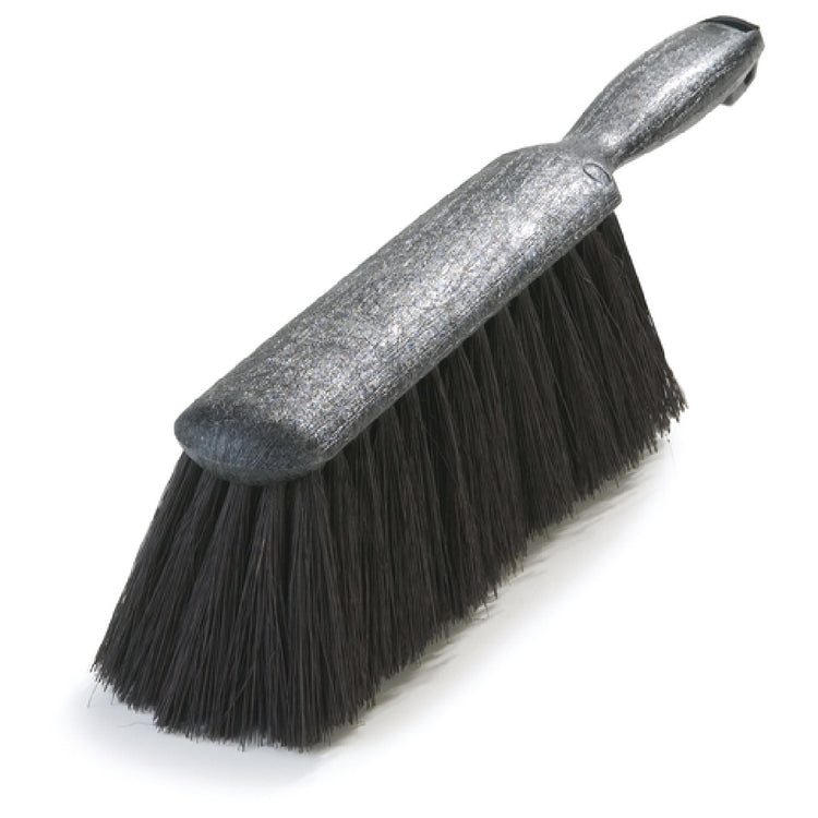 The Carlisle 3625903 Carlisle Flo-Pac® Counter/Bench Brush 8" Black Plastic Block stands as a versatile cleaning tool, meticulously designed to cater to diverse market segments within the cleaning industry. This brush features an 8-inch black plastic block, providing a lightweight yet durable base for a variety of cleaning tasks. The 2-1/2-inch tampico bristles are renowned for their natural resistance to heat, chemicals, and liquids, making them ideal for both dry and wet sweeping applications. The tampico fibers offer moderate stiffness, ensuring effective cleaning on a multitude of surfaces without causing damage. The compact size and ergonomic design of the Carlisle Flo-Pac® Counter/Bench Brush make it an ideal choice for cleaning professionals needing a reliable tool for countertops, benches, and other surfaces in commercial, industrial, and residential settings. The durable construction ensures longevity, even with frequent use. Whether employed in a restaurant kitchen, a manufacturing plant, or a household environment, this brush delivers consistent performance. Its thoughtful design and effective bristle configuration highlight its suitability for rigorous cleaning tasks, providing users with a dependable solution for maintaining cleanliness and hygiene across various applications.
