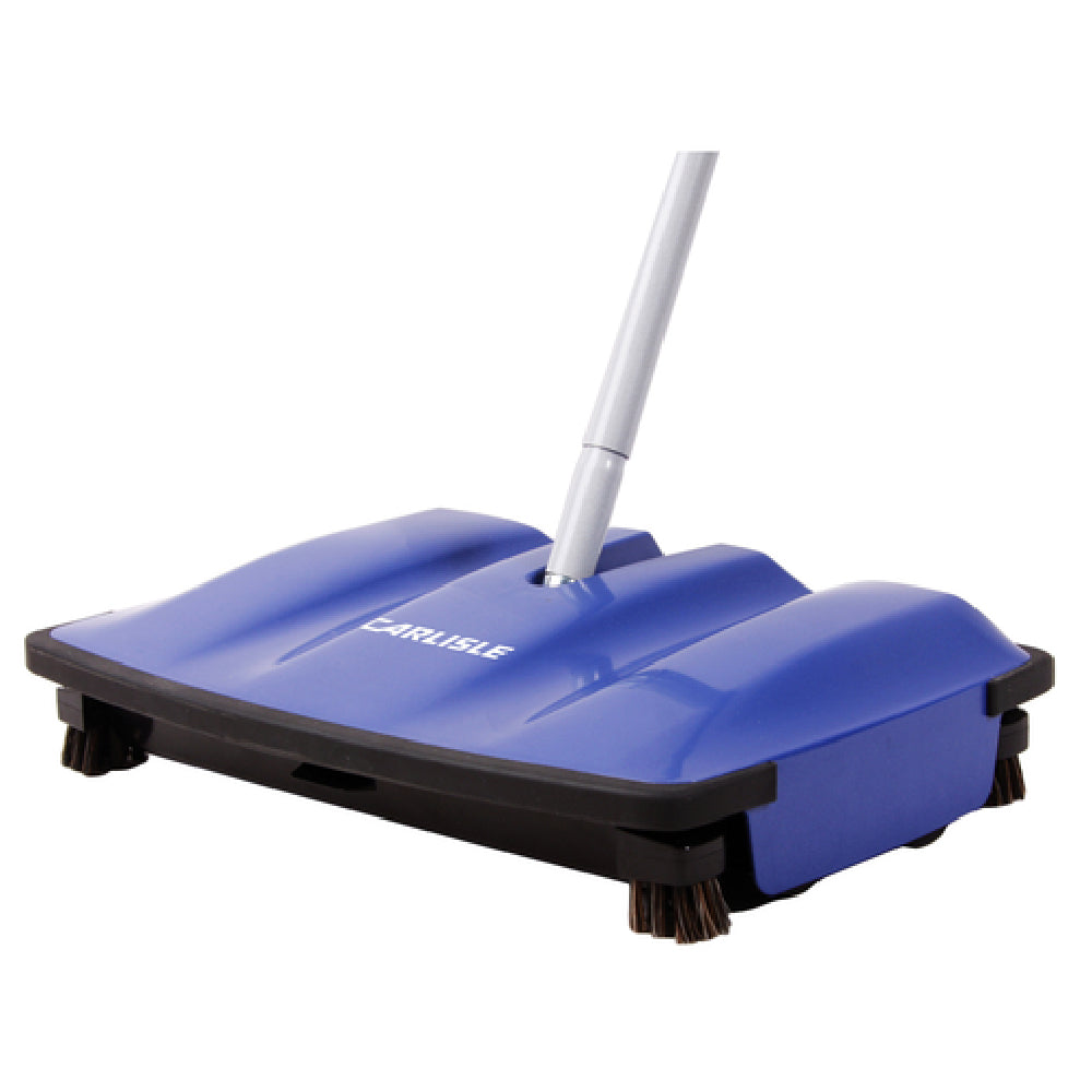 The Carlisle 3640014 Carlisle Multi-Surface Duo-Sweeper 12"W Low-profile is a versatile cleaning tool designed to meet the diverse needs of various industry segments. It features non-marking rubber blades that effectively sweep across different surfaces without causing damage or leaving marks, making it suitable for both commercial and residential settings. The 12-inch width allows for efficient cleaning in tight spaces, while the low-profile design ensures easy maneuverability under furniture and equipment. This duo-sweeper comes equipped with a large capacity dust bin, reducing the frequency of emptying and enhancing productivity. Its ergonomic swivel steel handle provides comfort and ease of use, accommodating extended cleaning sessions without strain. Constructed with durable ABS-plastic, the sweeper is built to withstand regular use and maintain its performance over time. Non-marking wheels and bumpers further protect floors and walls during operation. The Carlisle 3640014 is an ideal choice for those seeking a reliable, maintenance-free cleaning solution that integrates seamlessly into a variety of environments, from bustling commercial hubs to quieter residential spaces.